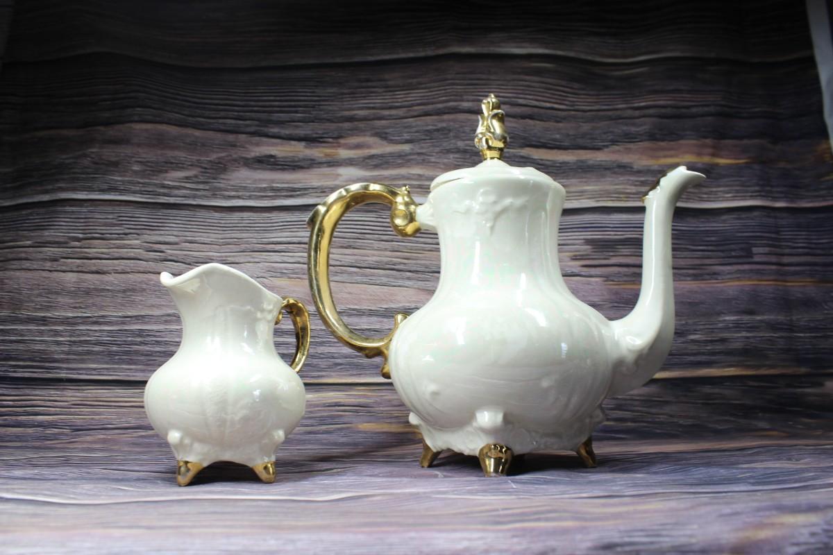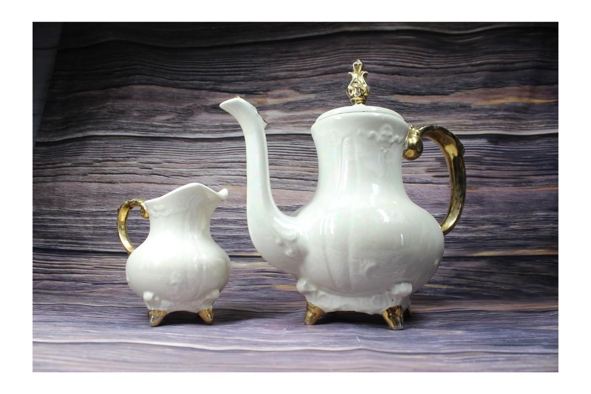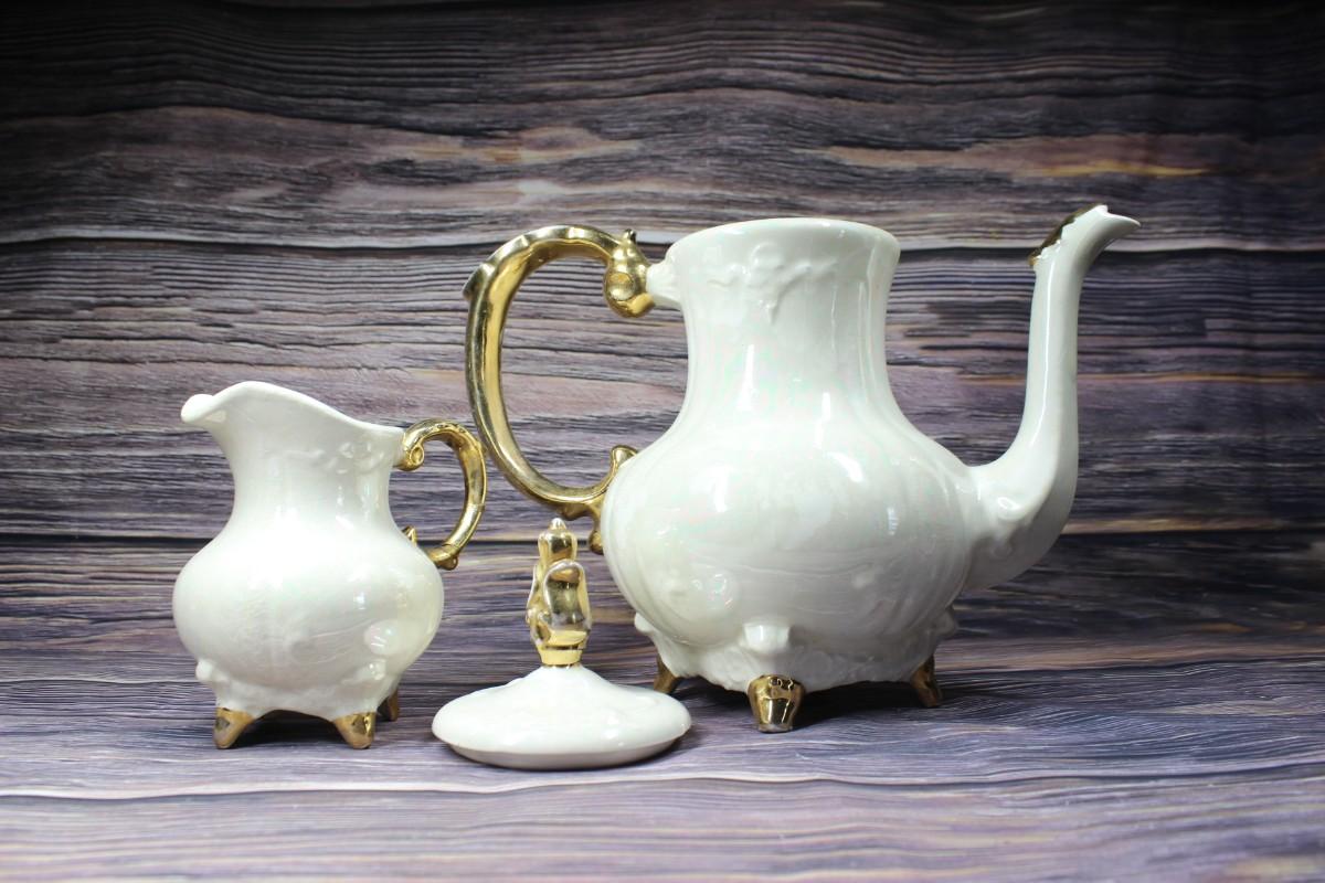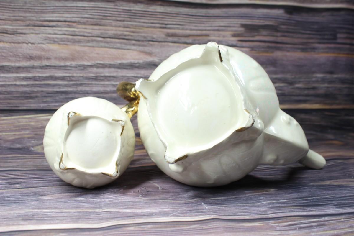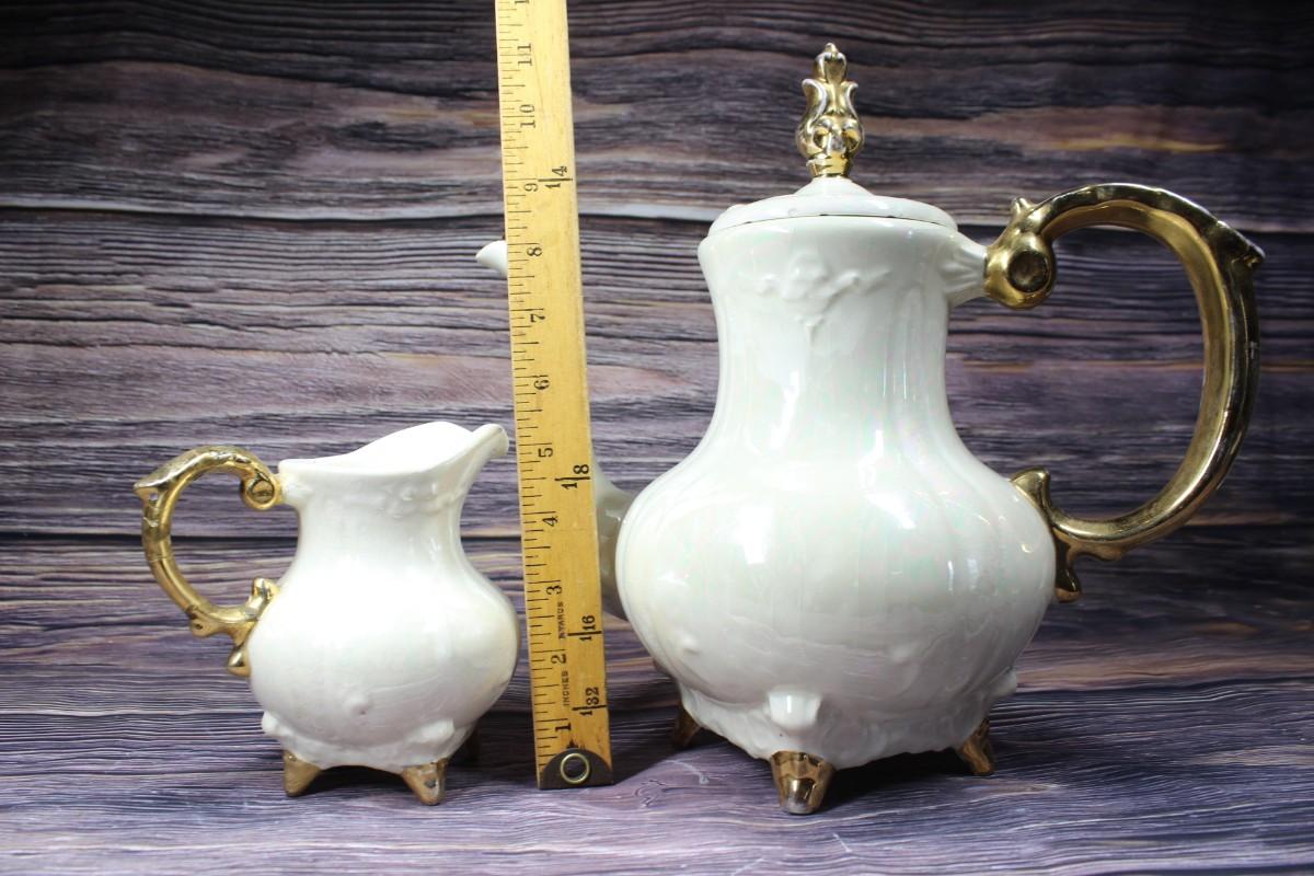Vintage Royal Ceramic White & Gold Teapot and Cream Pitcher