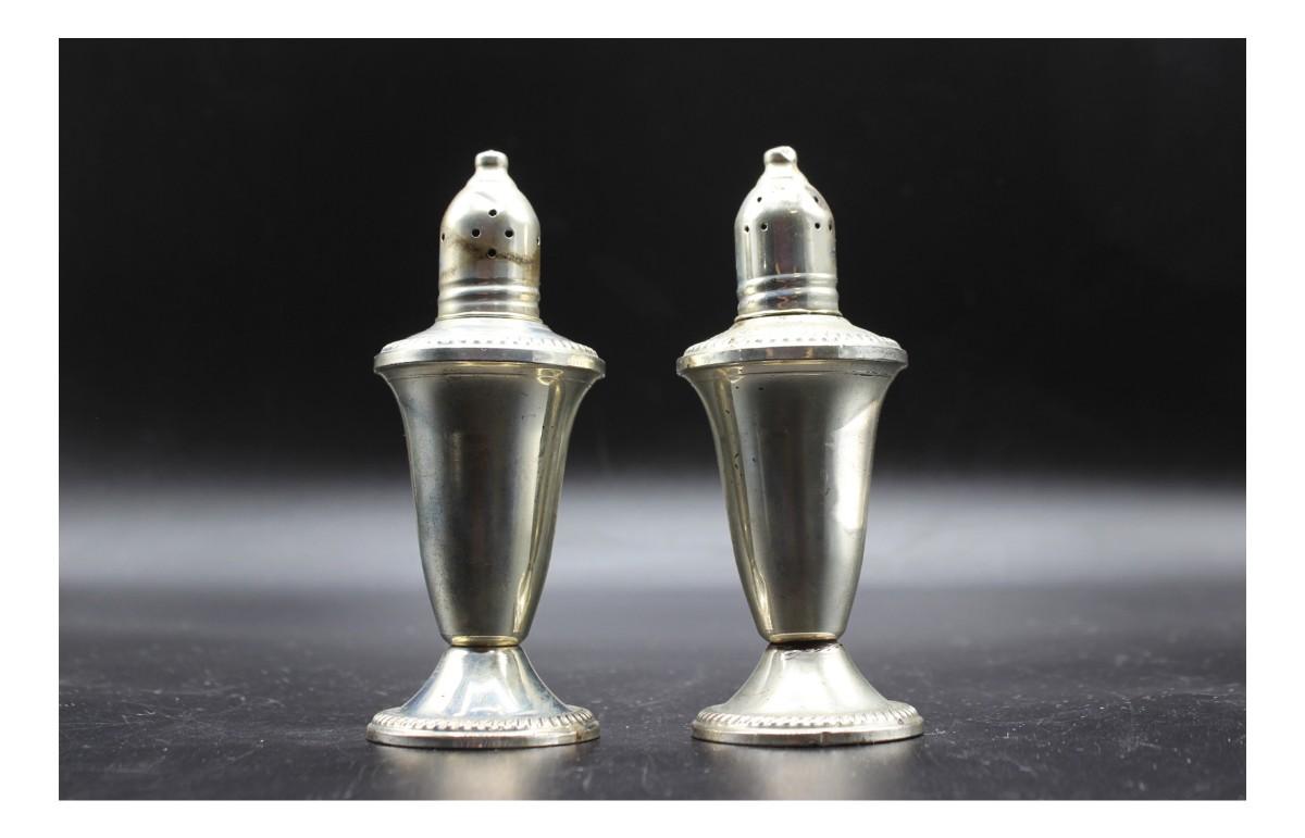 Antique Duchin Creation Sterling Weighted Salt & Pepper Shakers, there are no significant scratches or dents to the piece and is in good vintage condition. Check pictures for more details and for sizing. Each piece is stamped with the makers mark: Duchin Creation Sterling Weighted.