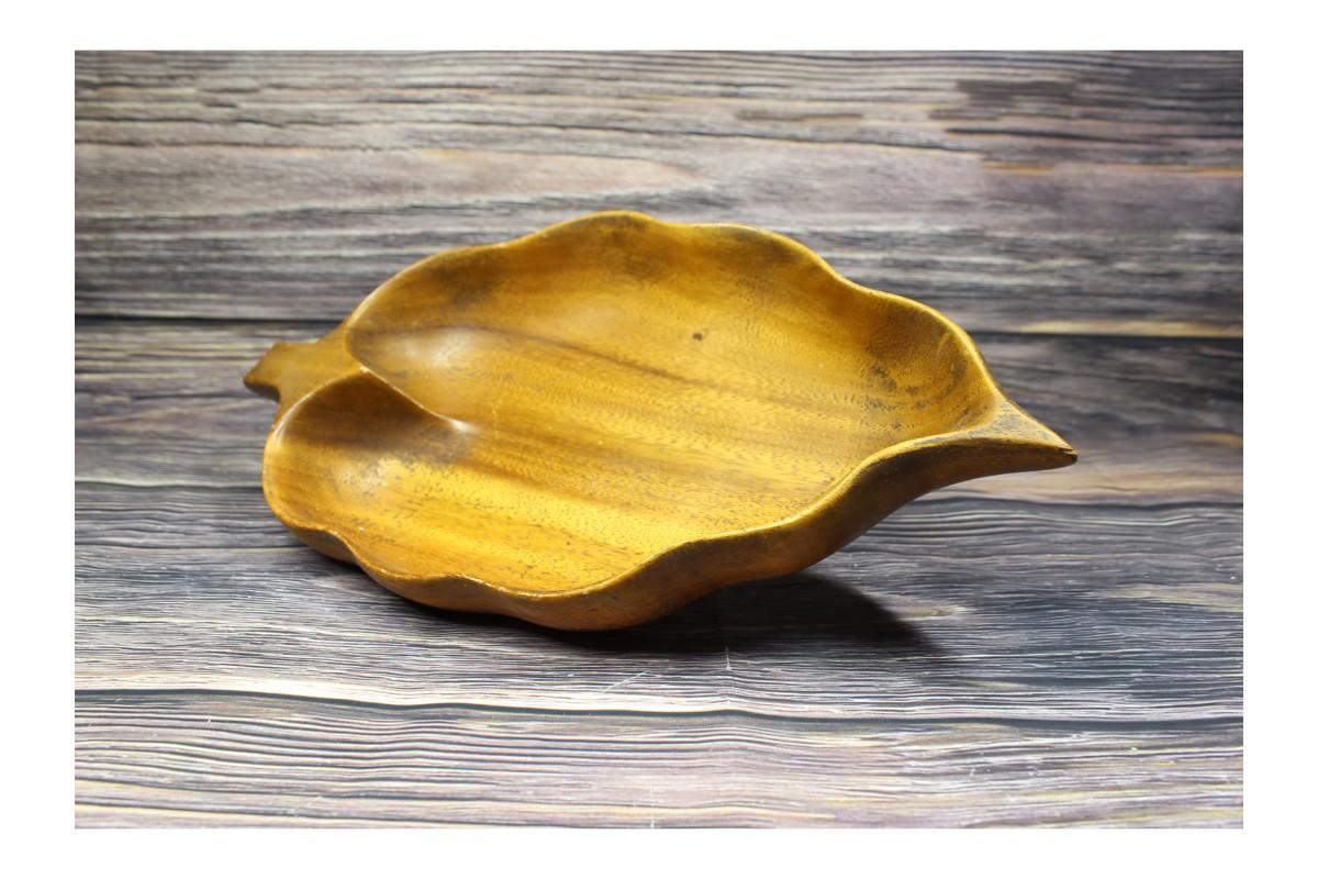 Vintage Monkey Pod Wood Leaf Serving Dish Bowl