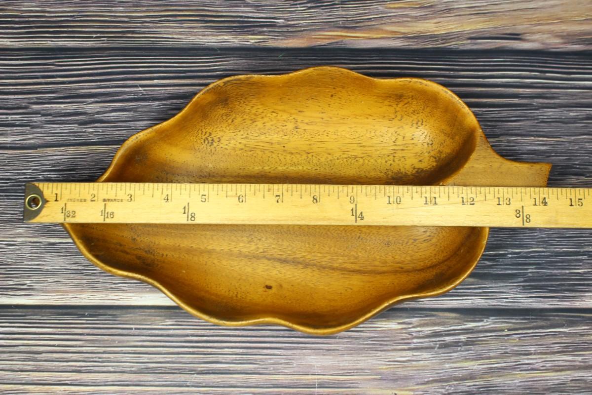 Vintage Wood Leaf Serving Dish Bowl, there's no significant chips or cracks to the piece and is in good useable condition. Check pictures for more details and for sizing.