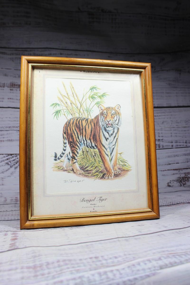 Vintage framed print of a Bengal Tiger. Looks to be pencil signed towards the lower corner. About 8x10 size.