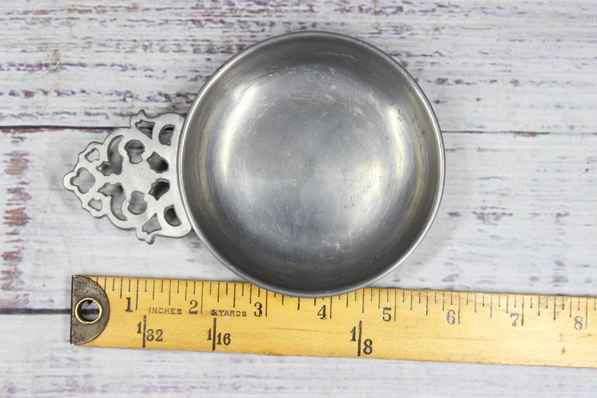 Vintage Made in Hong Kong CRDO Pewter Porringer Dish, there are no cracks or dents to the dish and is in good vintage condition. Check pictures for more details and for sizing.