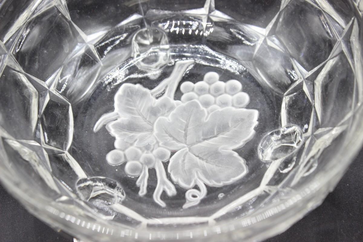 Vintage Crystal Glass Grapevine Bowl, there are no cracks or chips to the piece and is in good vintage condition. Check pictures for more details and for sizing.