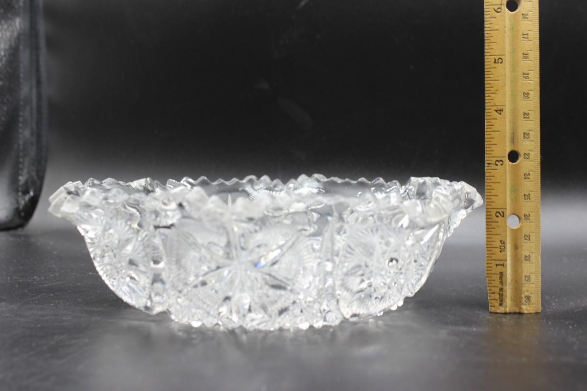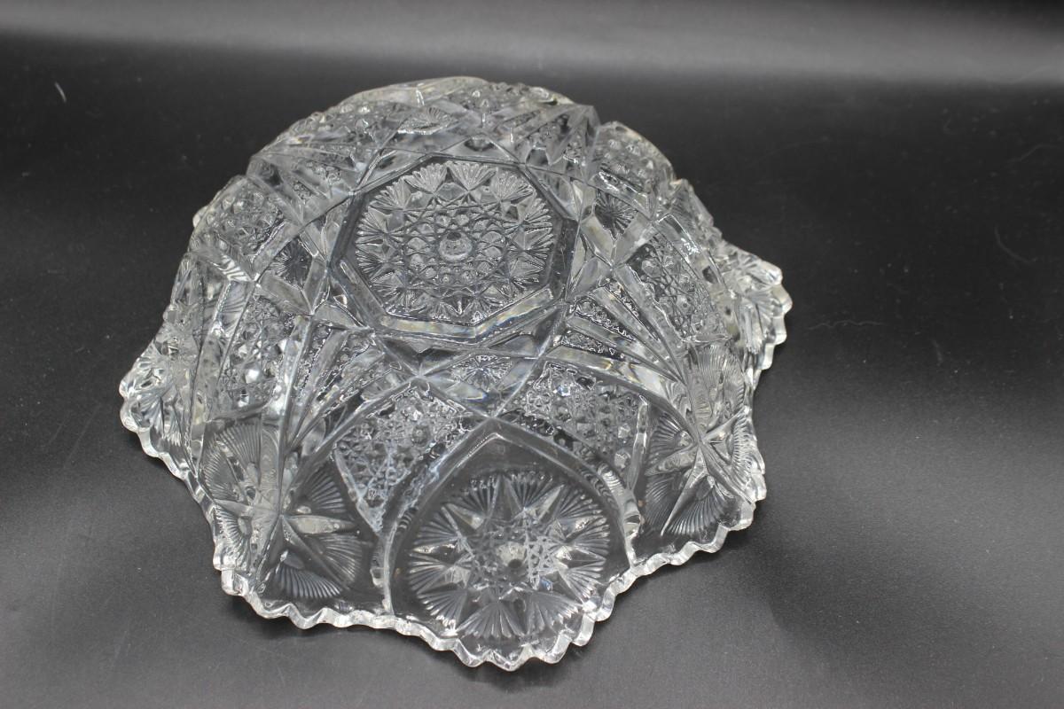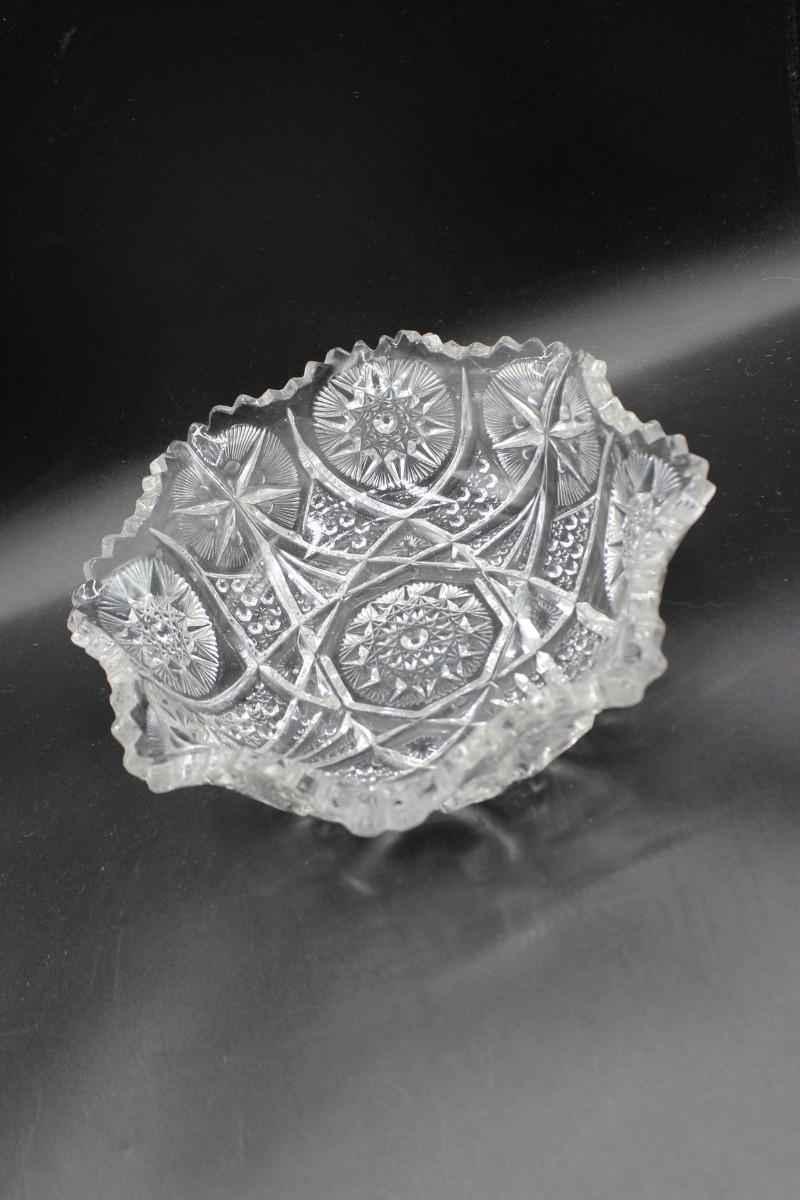 Vintage Crystal Glass Star Pattern Ruffled Decorative Fruit Bowl