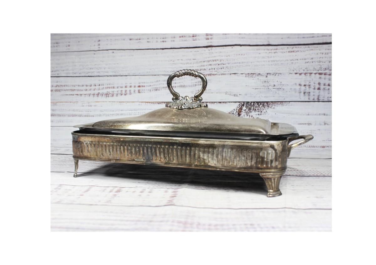 Vintage Silverplate Casserole Dish Holder with Lid