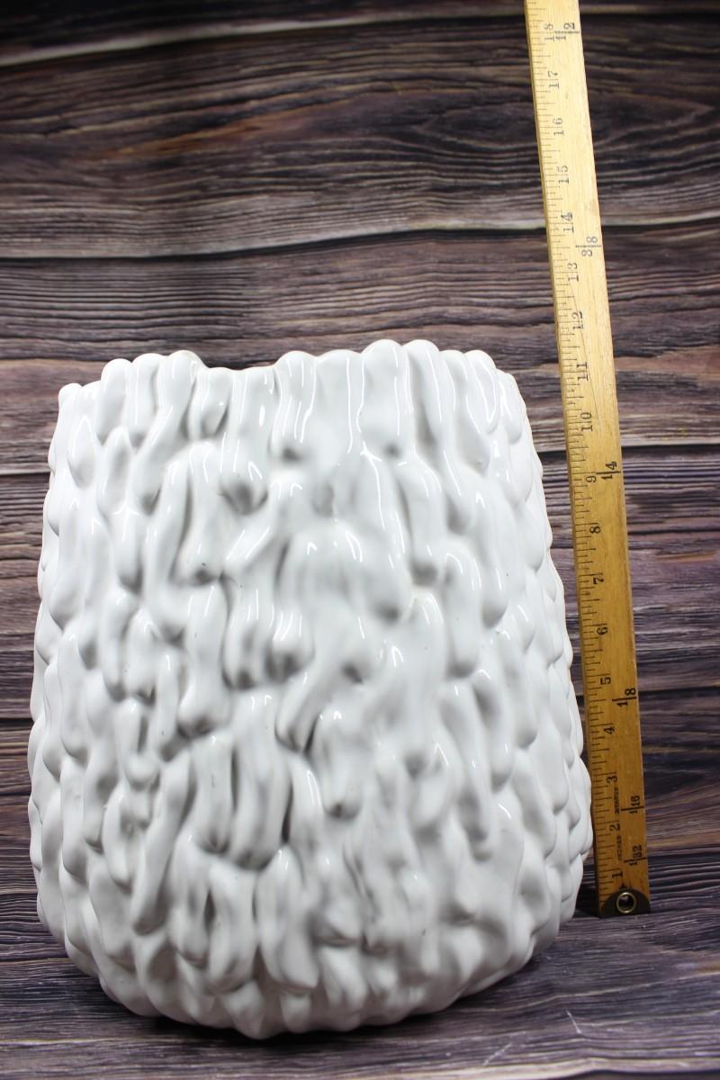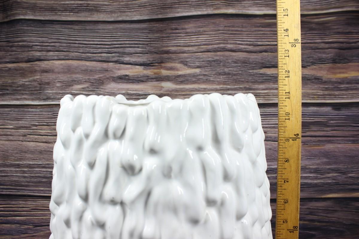 Vintage Retro Textured White Ceramic Planter, there are no significant cracks or chips to the piece and is in good condition. Large about 12" tall. Check pictures for more details and for sizing.