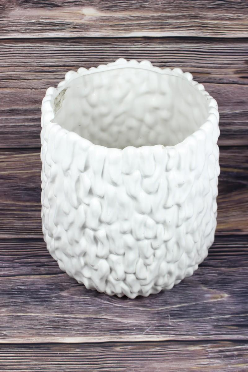 Vintage Retro Textured White Ceramic Planter