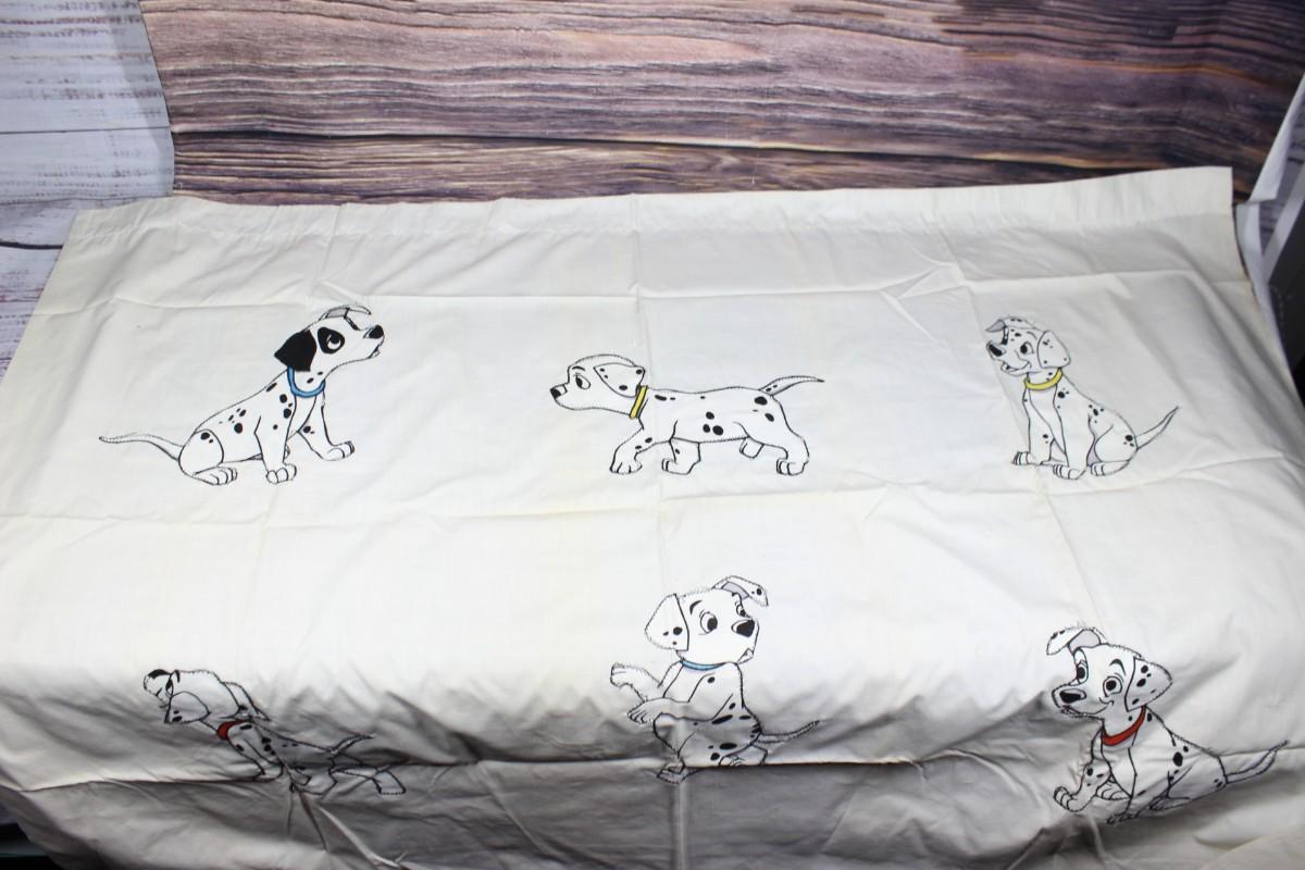 Vintage Lot of Disney 101 Dalmatians Hand Stitched Curtains, there is some wear/yellowing to the table cloths, but there are no significant rips or tears. Each curtain has 6 dogs stitched onto the cloth, each cloth is about 45" x 33." Check pictures for more details and for sizing. Comes with 3 curtain panels.