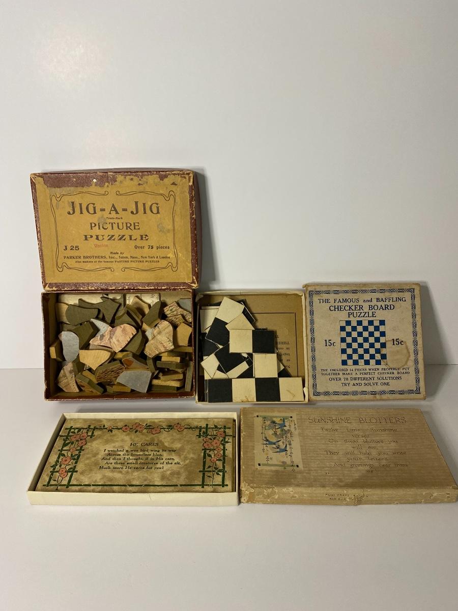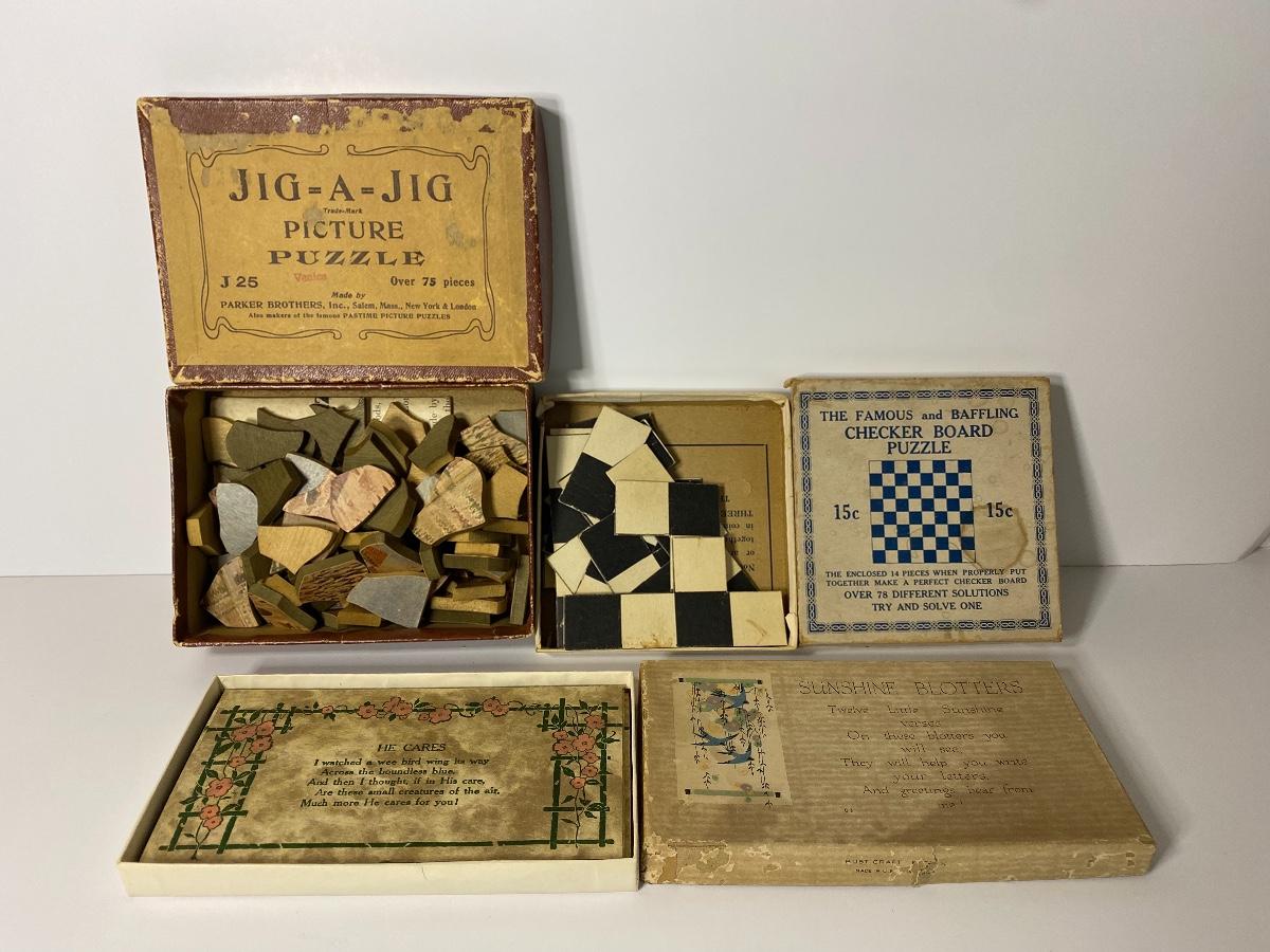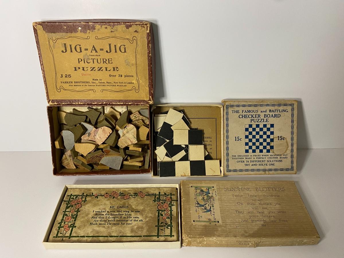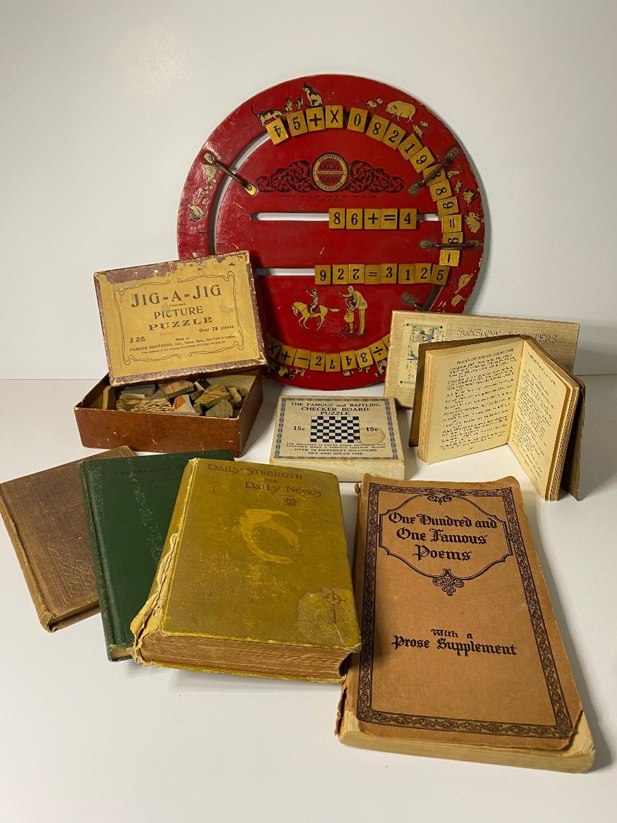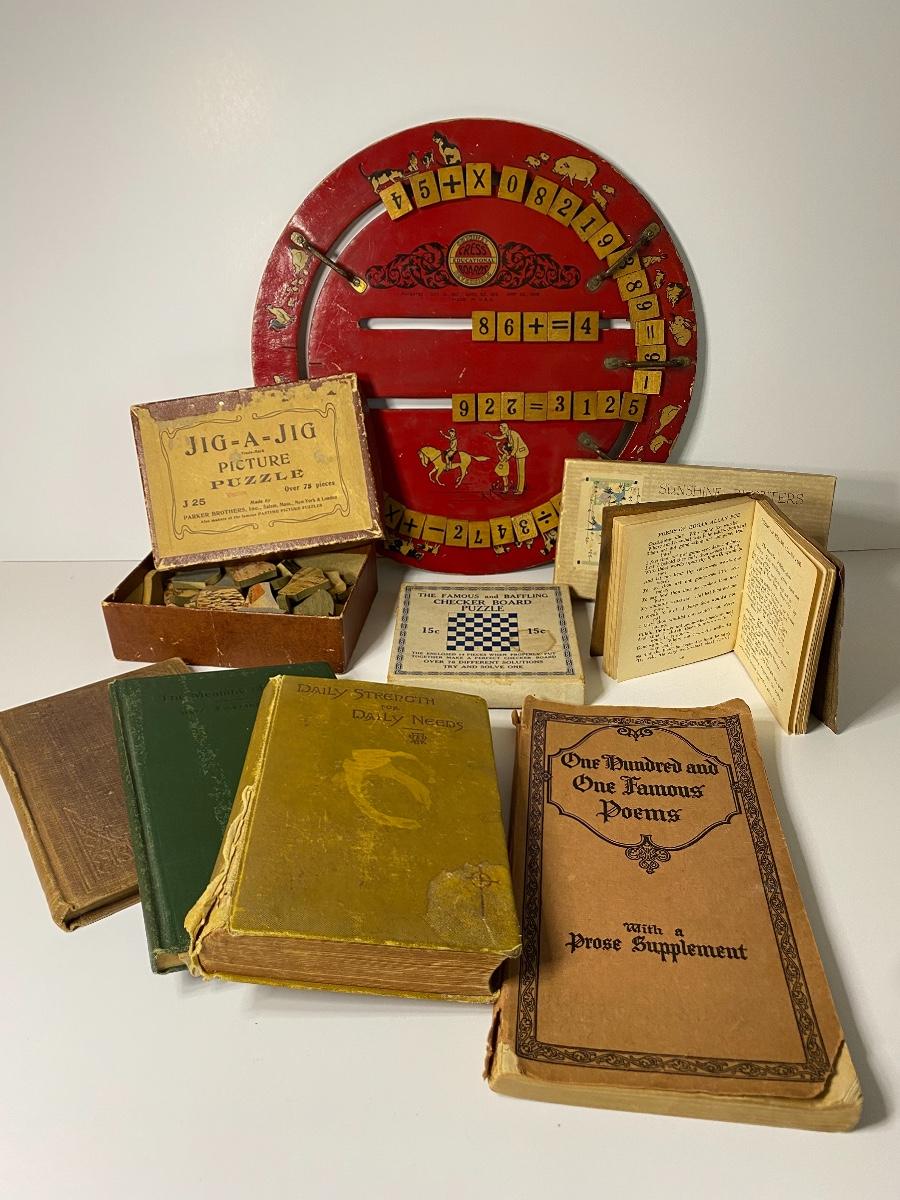 antique educational games, books and puzzle. Please see all pictures as they are the best representation of the items. The pictures show condition, measurements if taken, and what is included in the lot. Due to the large amount that we photograph and the time frame, we are not always able to take measurements. All items unless noted, are pre-owned and have been used. If you purchased furniture, you must bring help. We do not allow one person to carry large furniture out on their own. Bring help, tools and a truck for the safety of our client’s homes, and your personal safety. Company policy. Thank you.