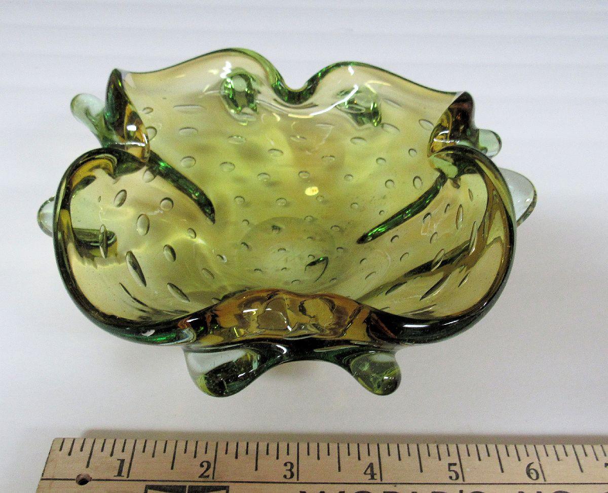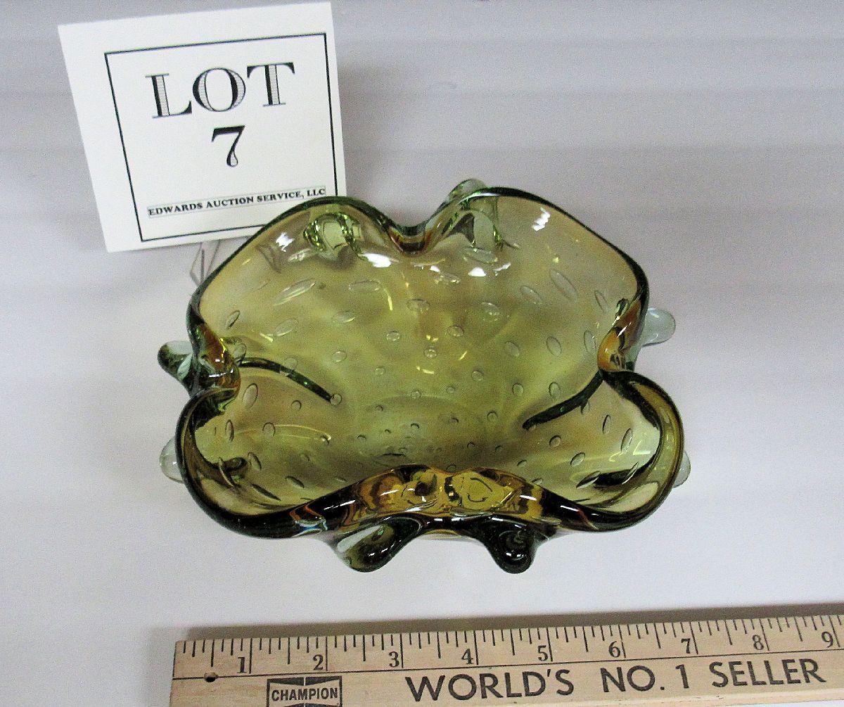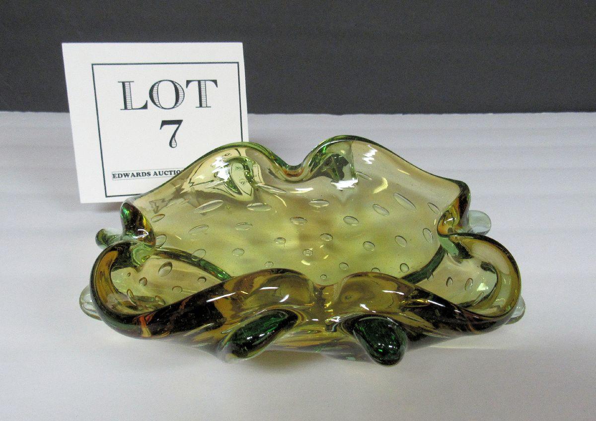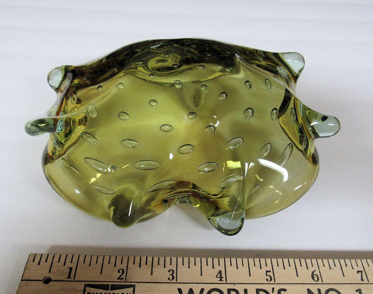 Mid Century Modern Free Form Heavy Glass Bowl, Controlled Bubbles
