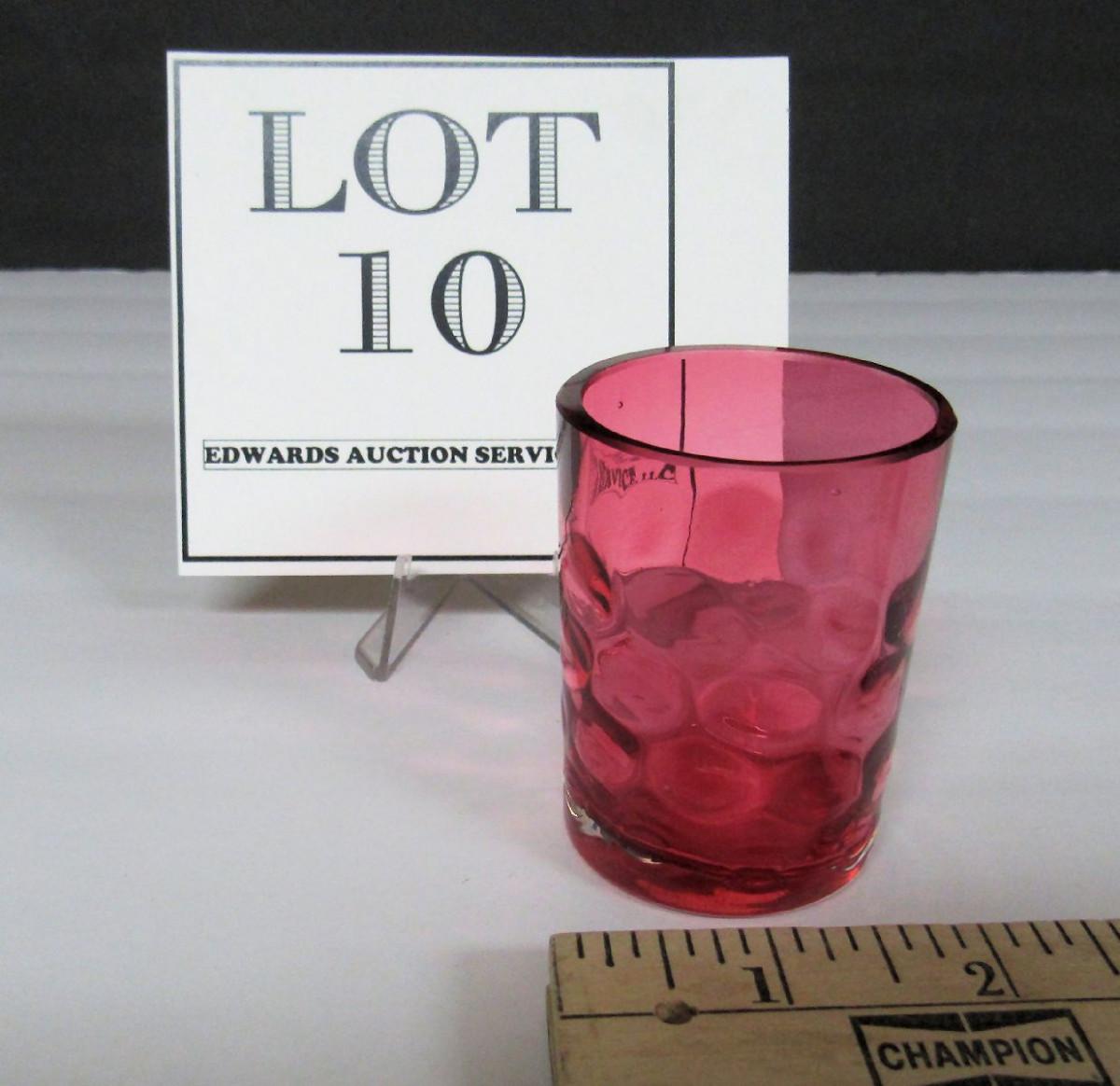 Vintage Cranberry Thumbprint Tall Toothpick or Match Holder
