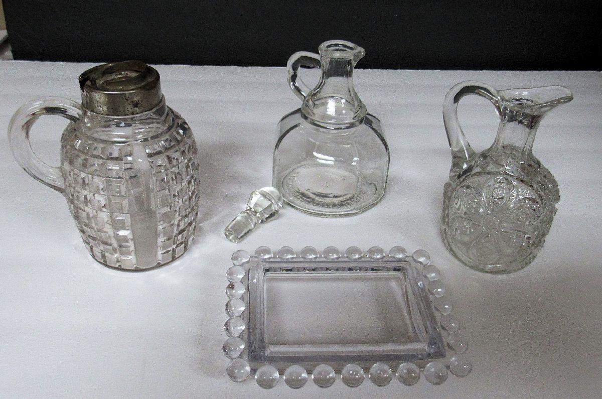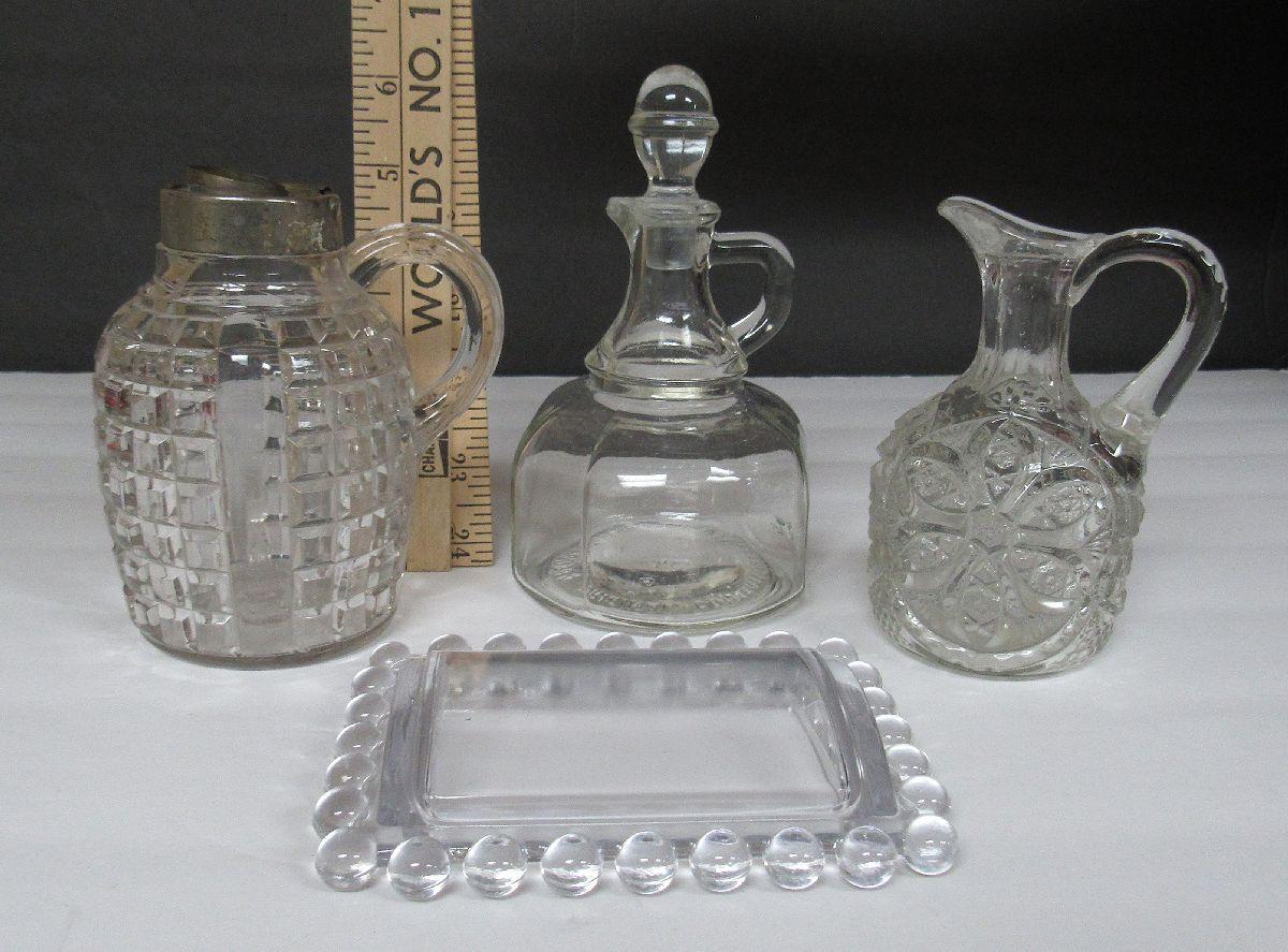 Misc Vintage Glassware, Candlewick Cover, Missouri Ozarks Vinegar Bottle, More