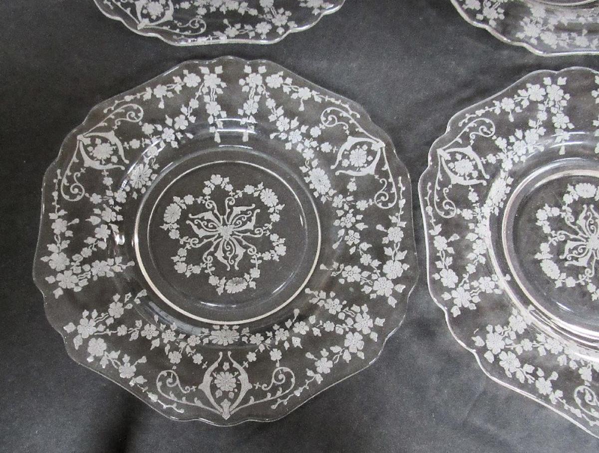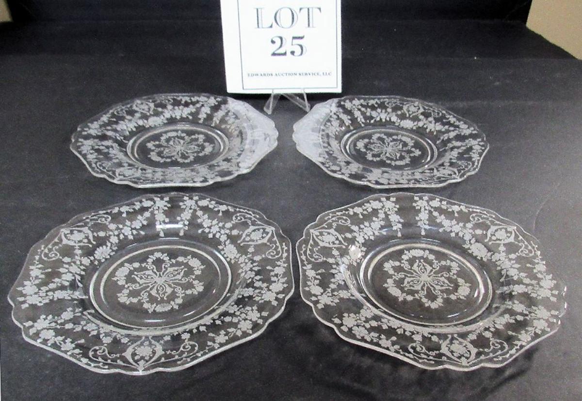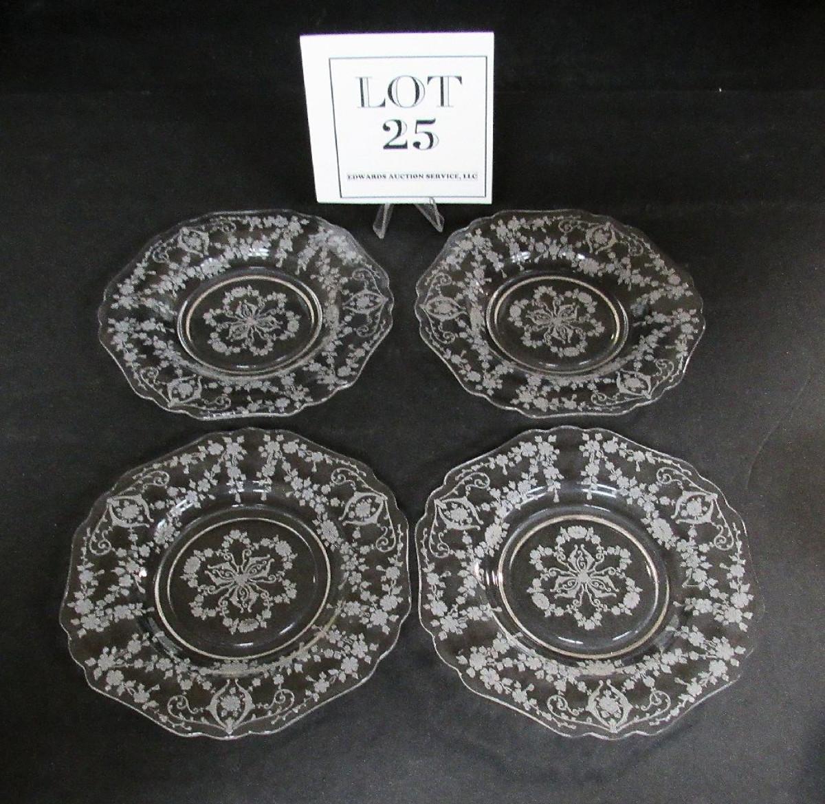 1940s Cambridge Glass Co Set of 4 Small Plates, Diane Pattern