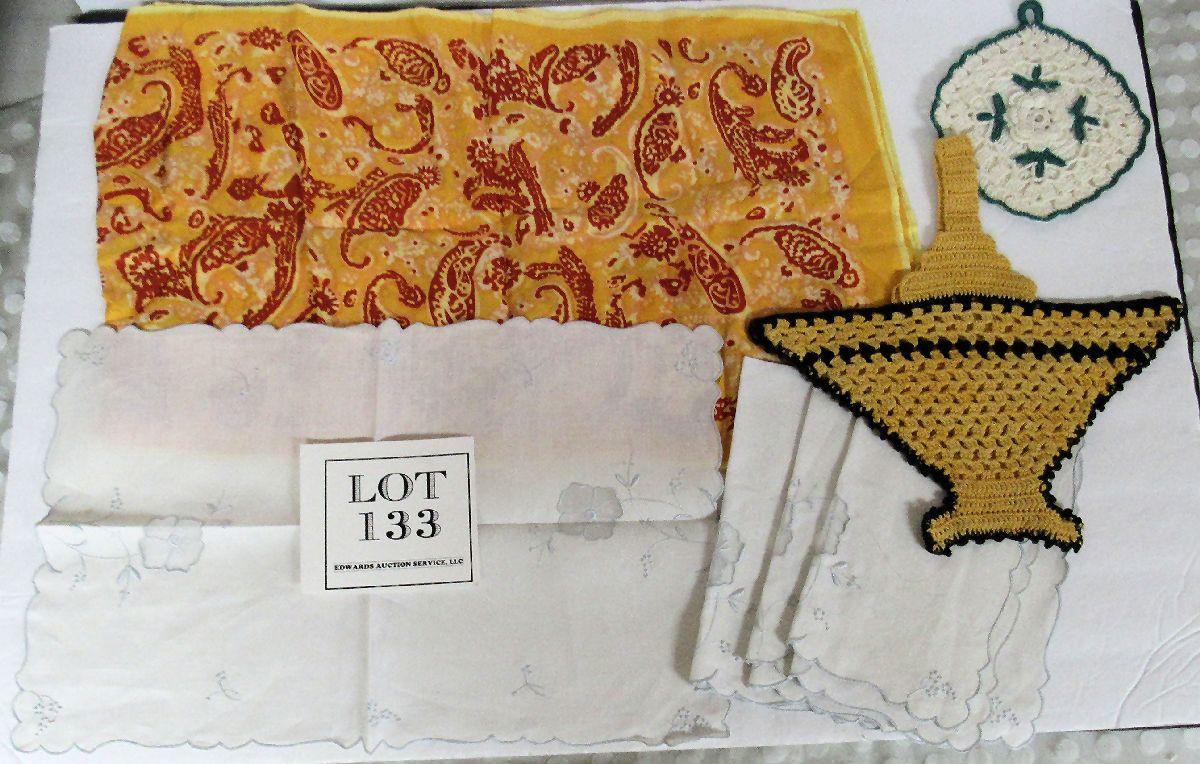 Vintage Pot Holders, Fancy Fabric Placemats, Scarf