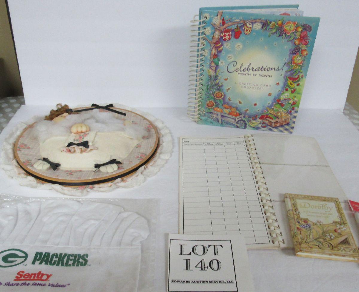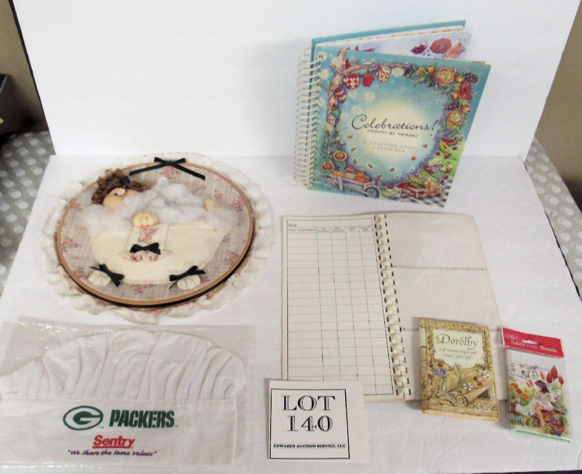 Mixed Lot: Packers Chef Hat, Wall Hanging, Address Books, Household Inventory and Card Organizer