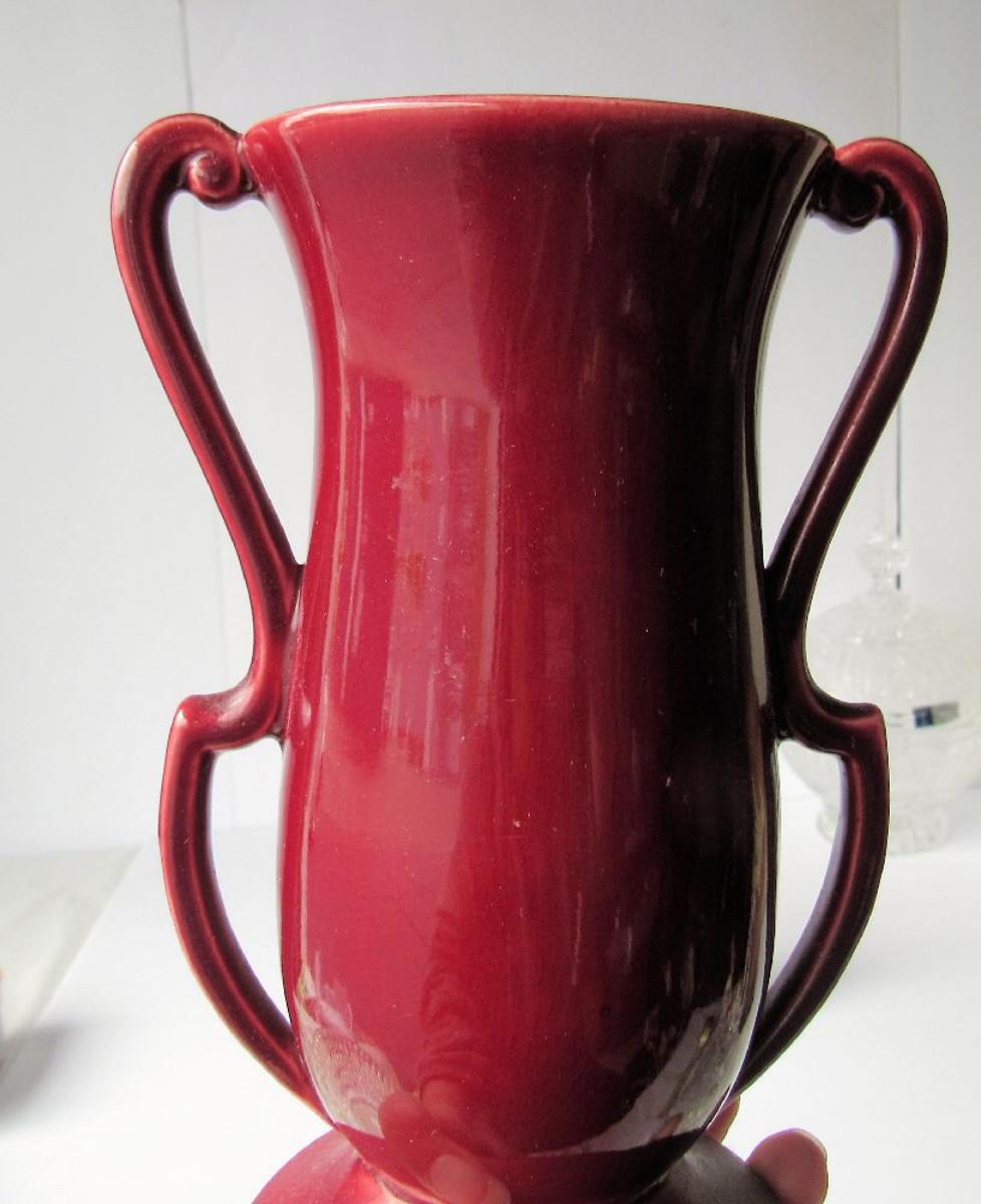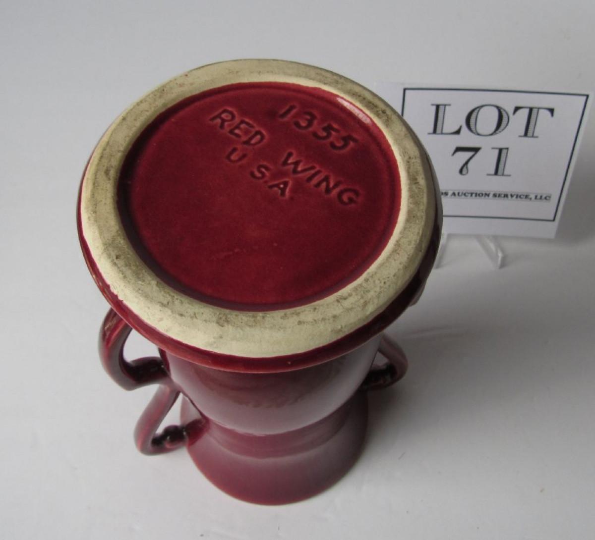 Old Red Wing Handled Vase, #1355, USA