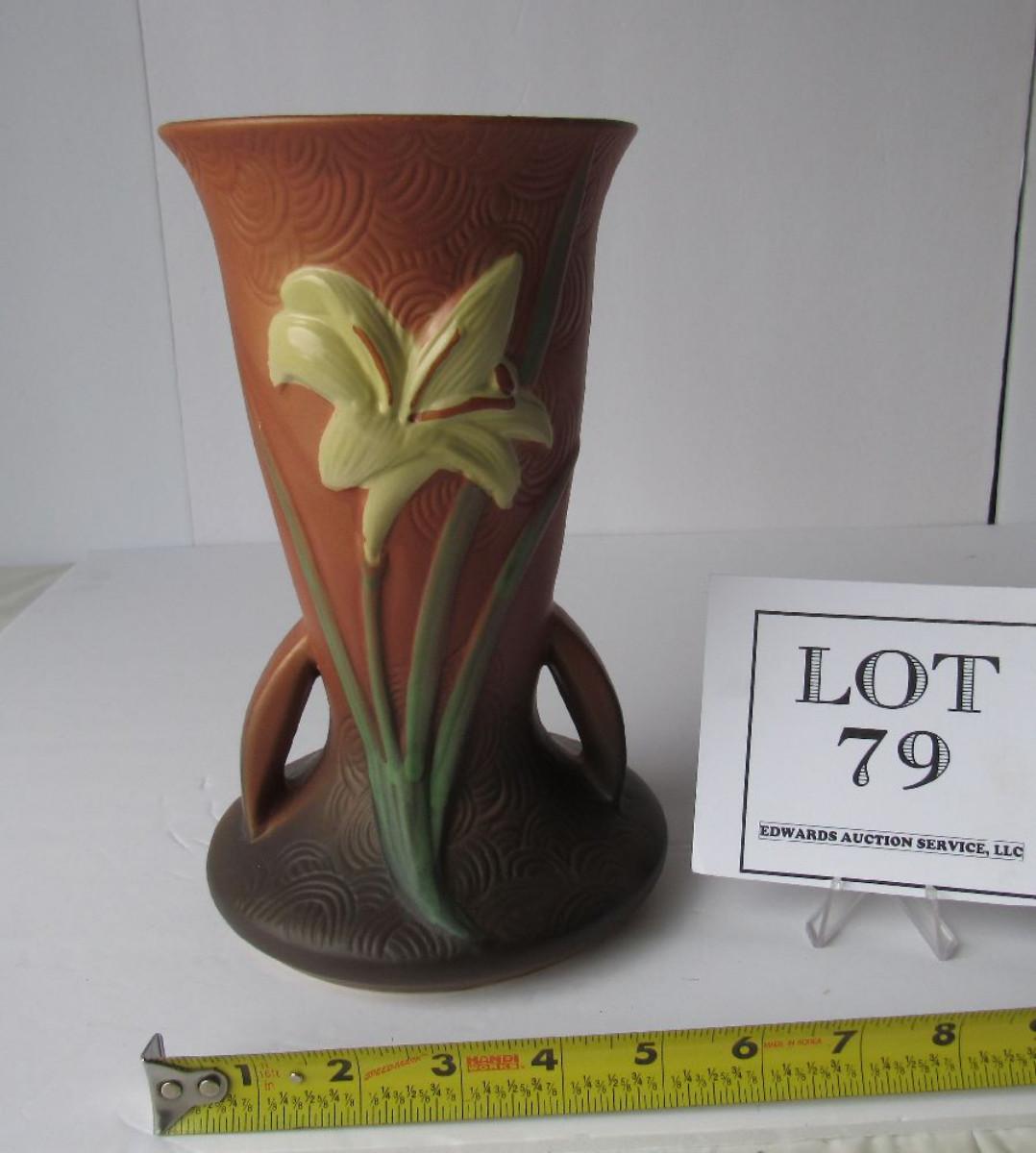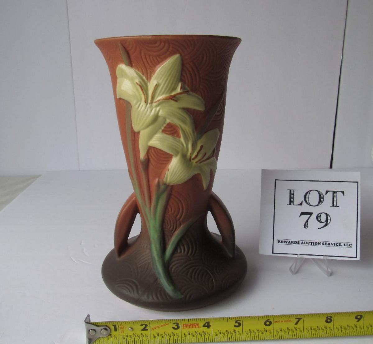 Tall Pottery Vase, Zepher Lily, Marked Roseville (read description)