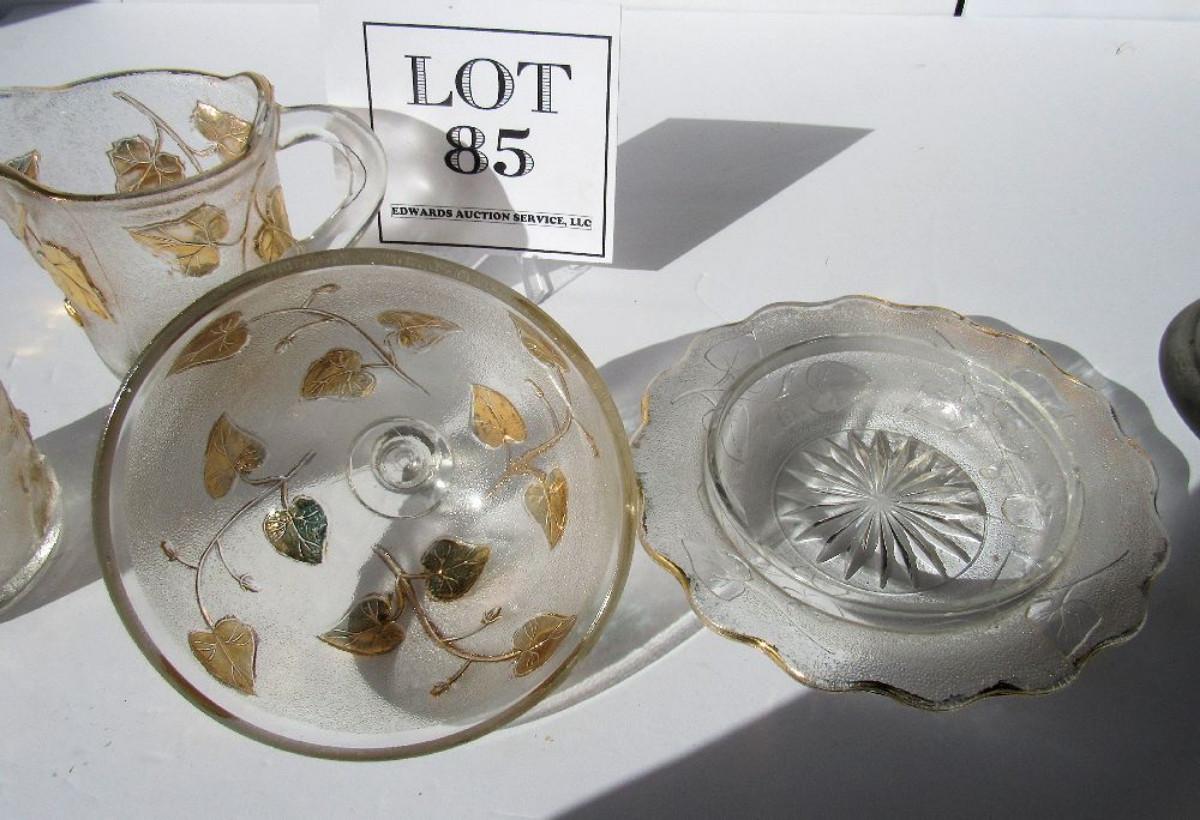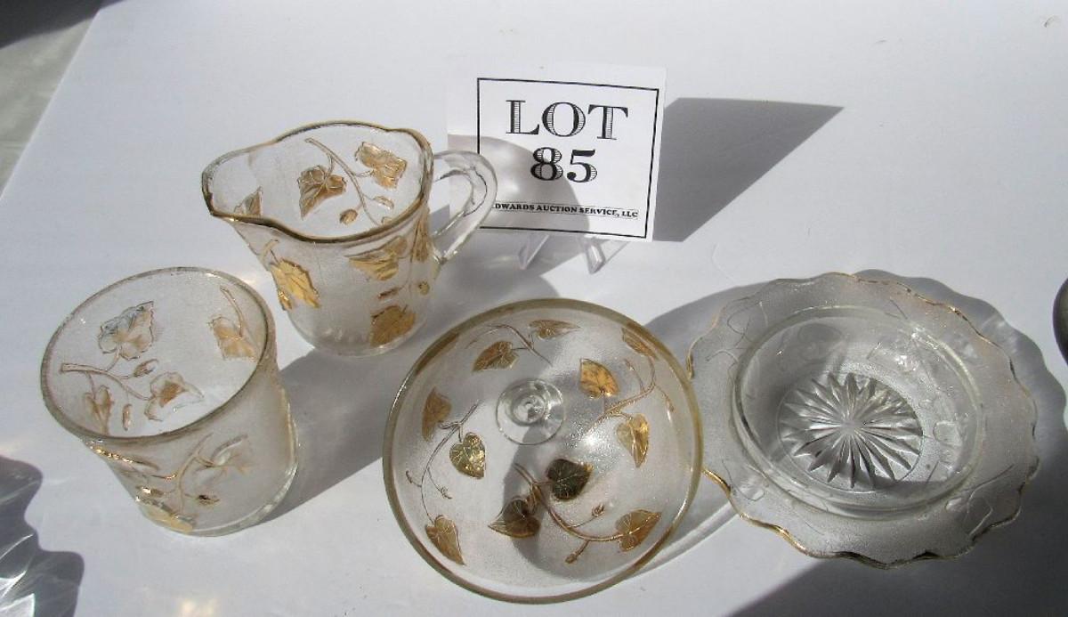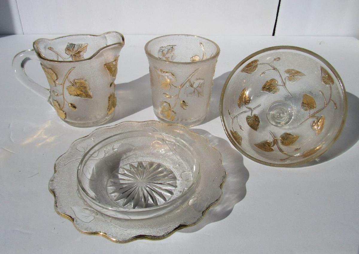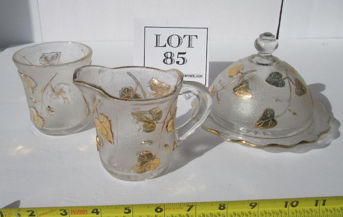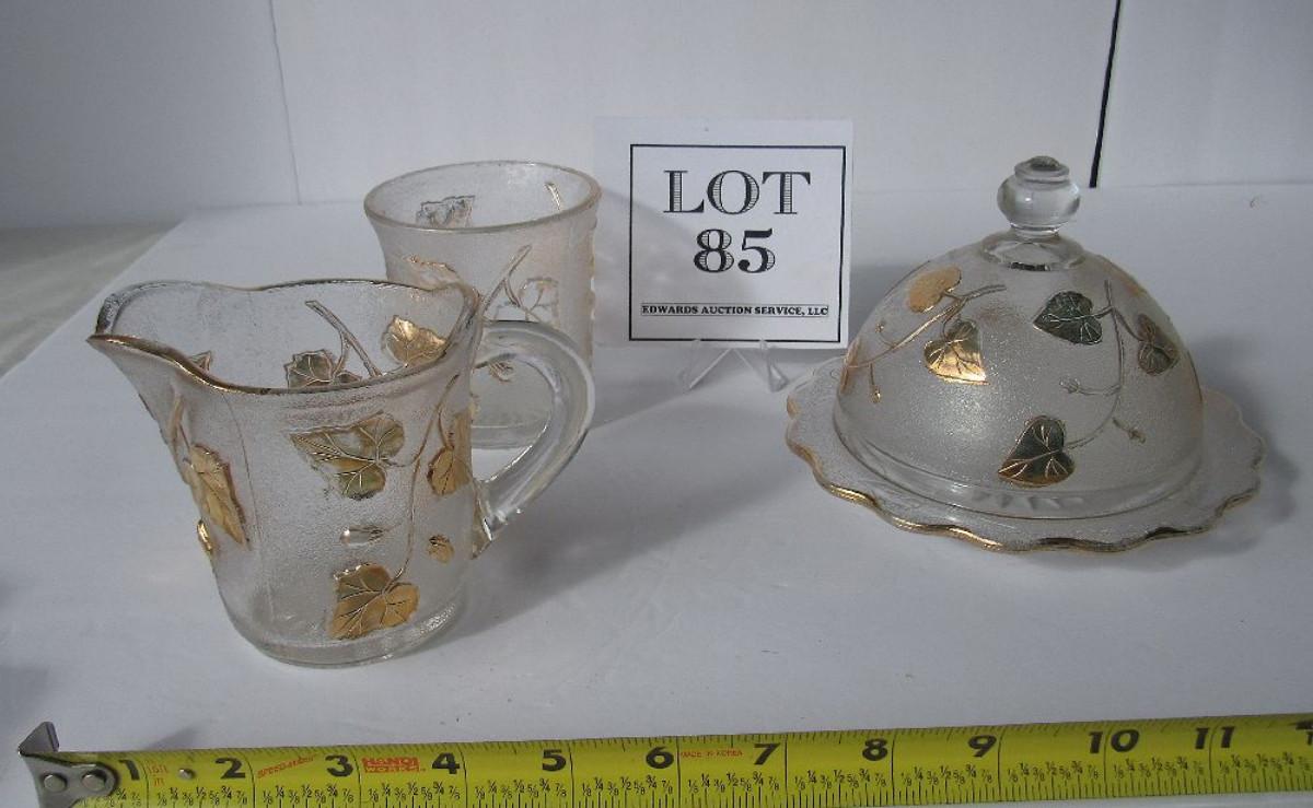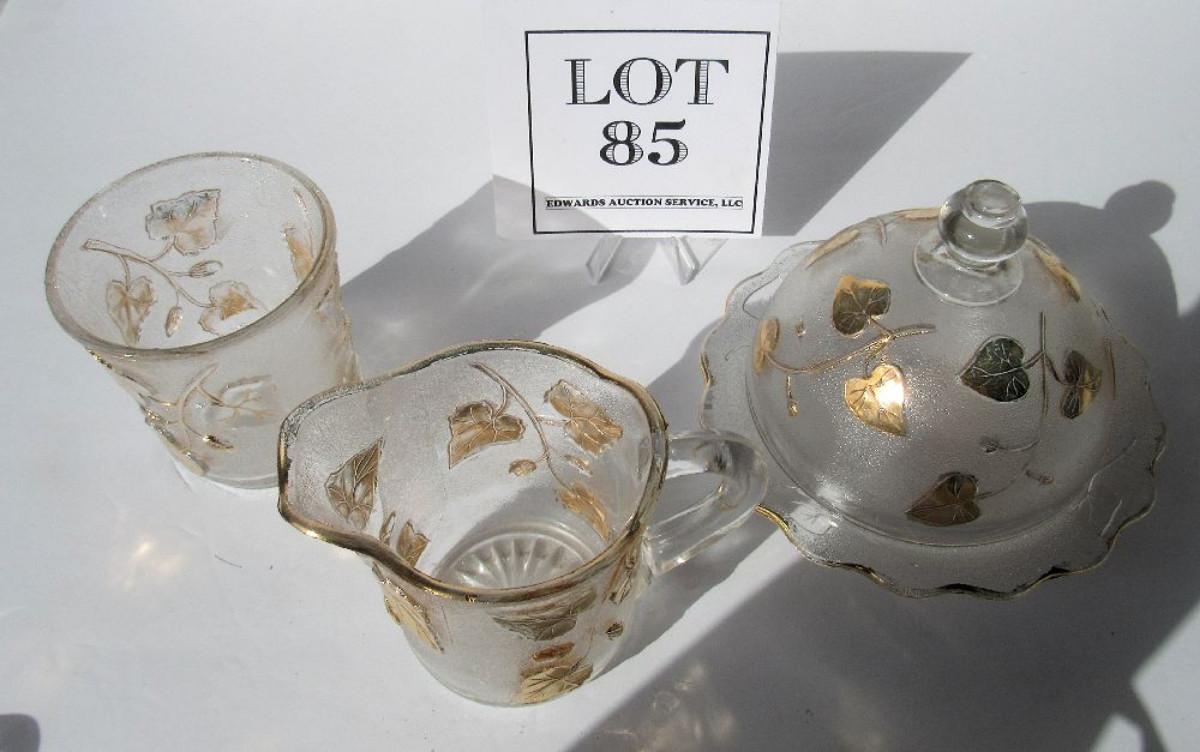 Old EAPG Ivy In Snow Covered Butter Dish, Creamer and Spooner