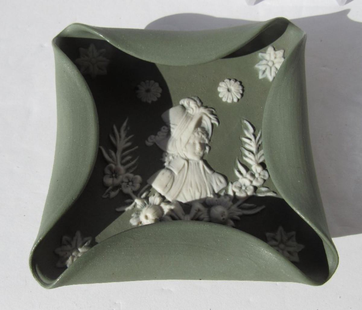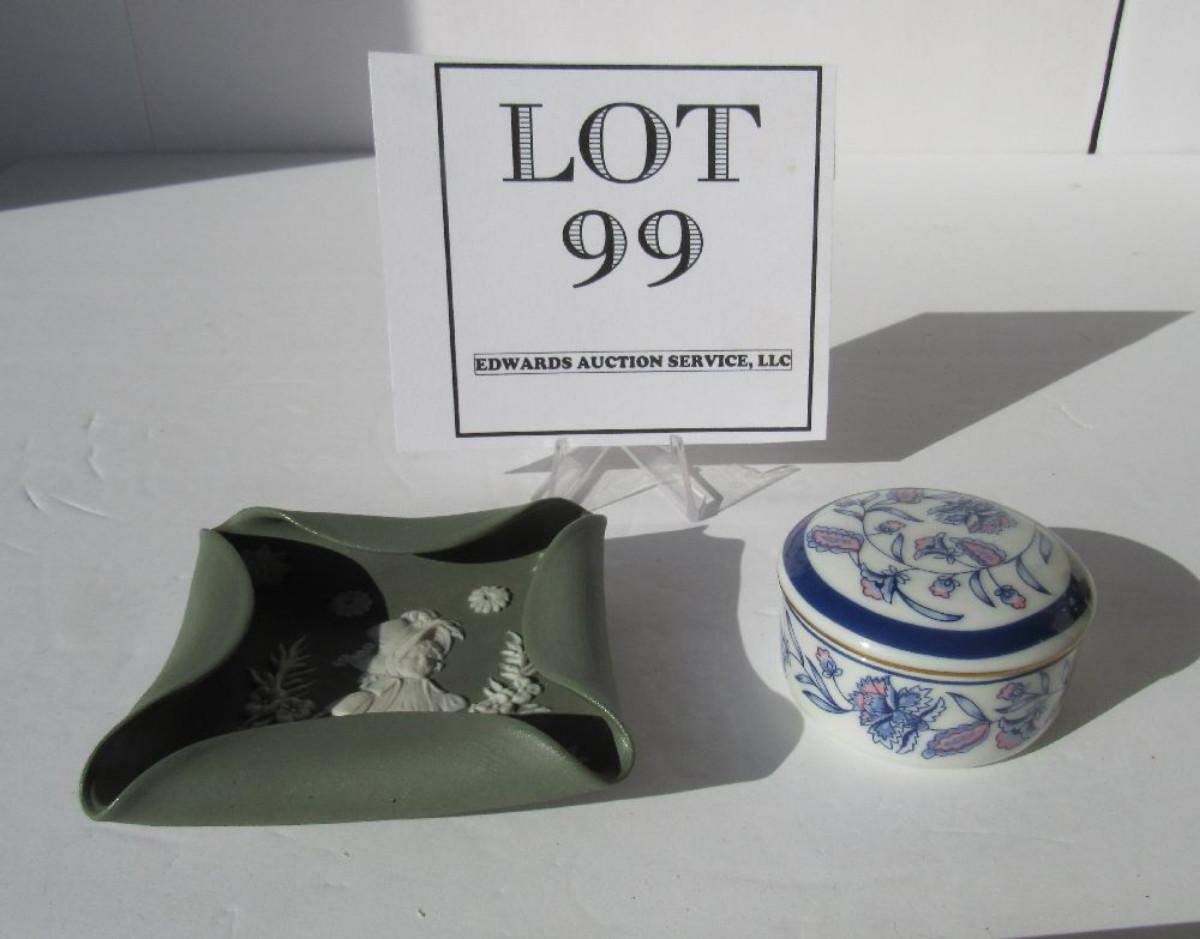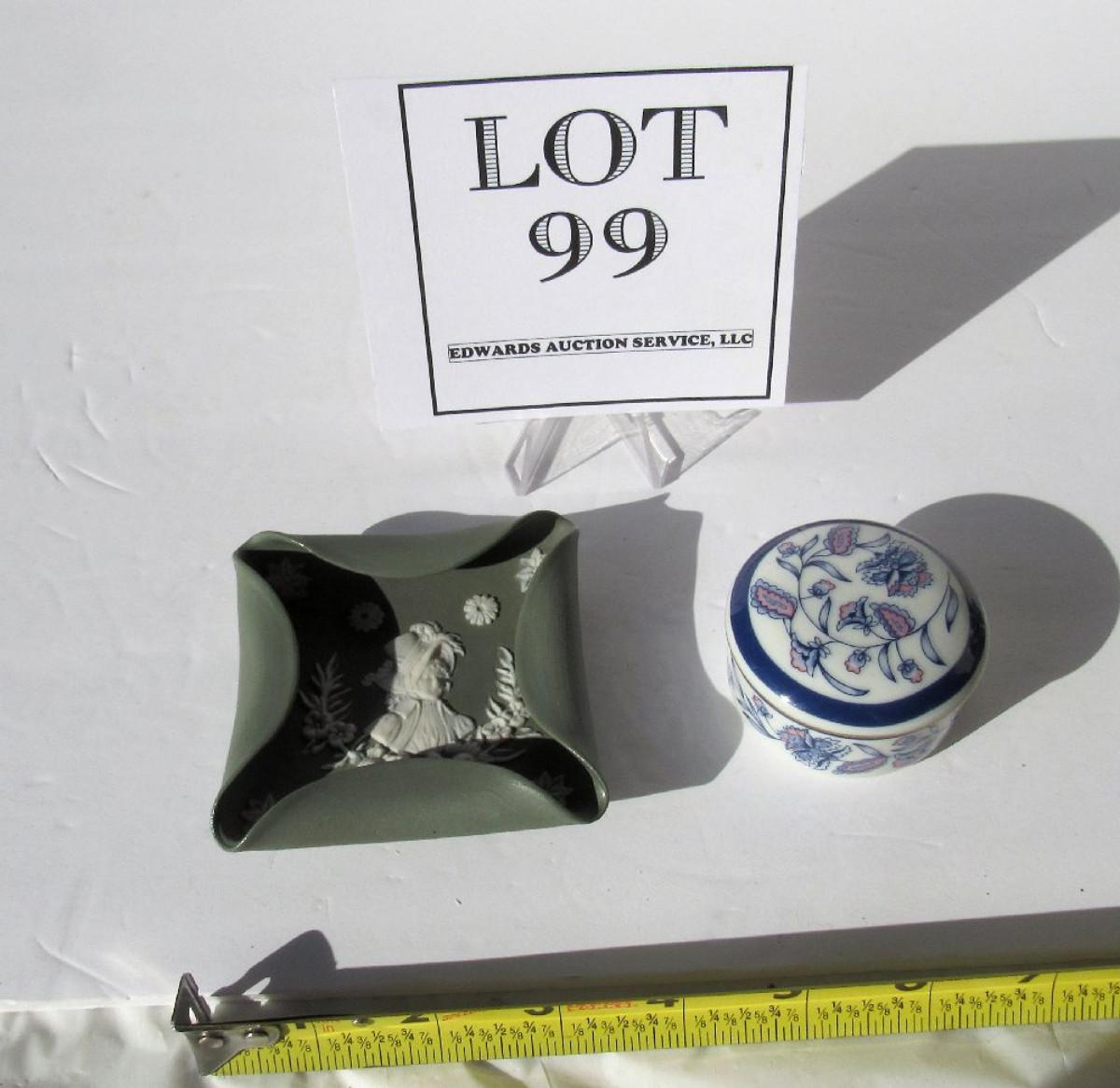 Old Green Jasperware Pin or Ring Dish and Small Otigiri Trinket Box
