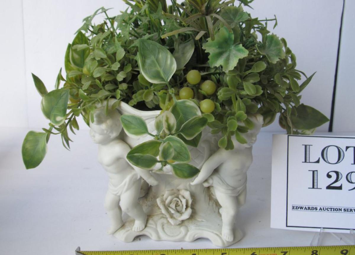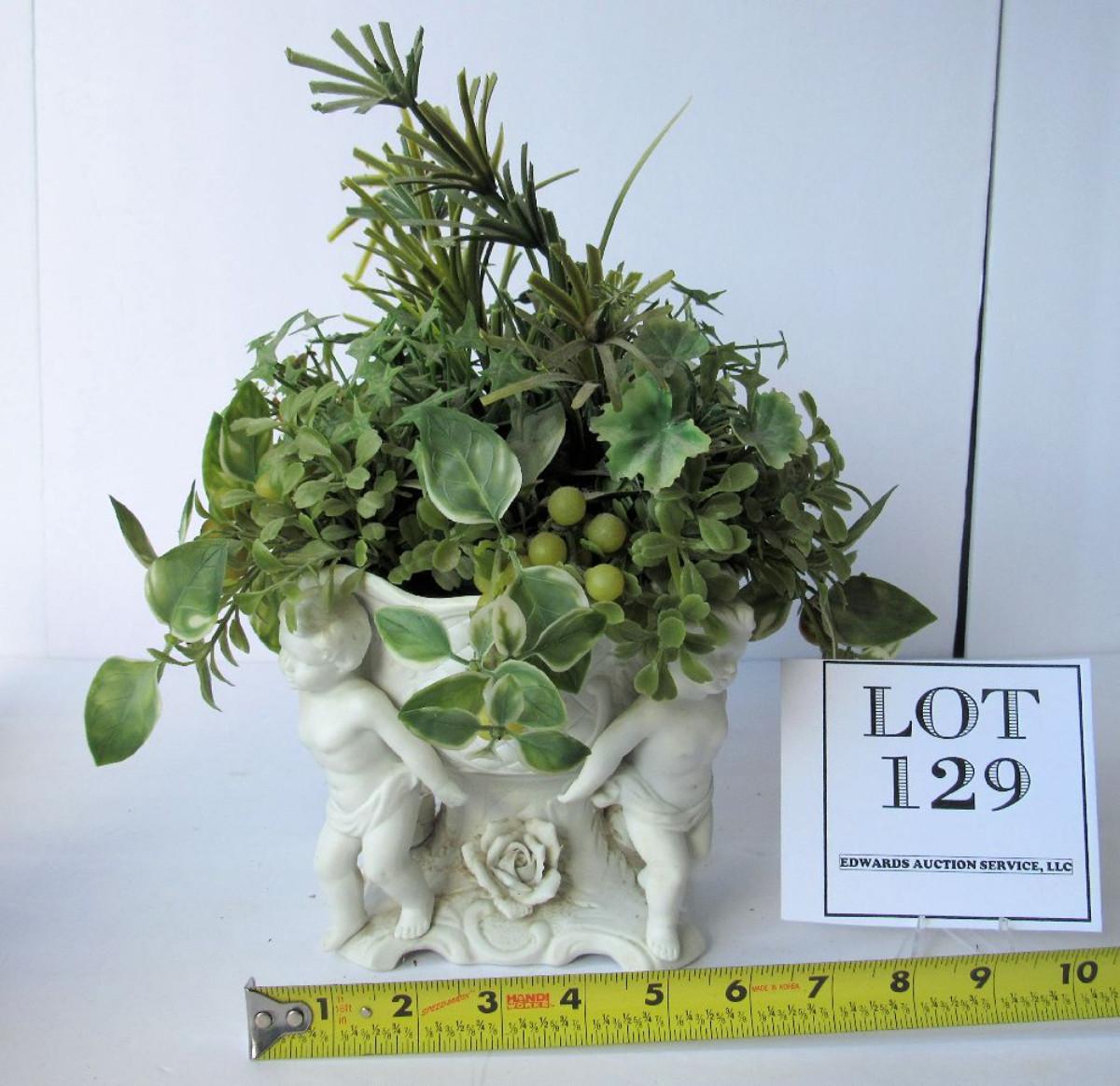 Decorative Bisque Planter With Cherubs on Sides, Inarco
