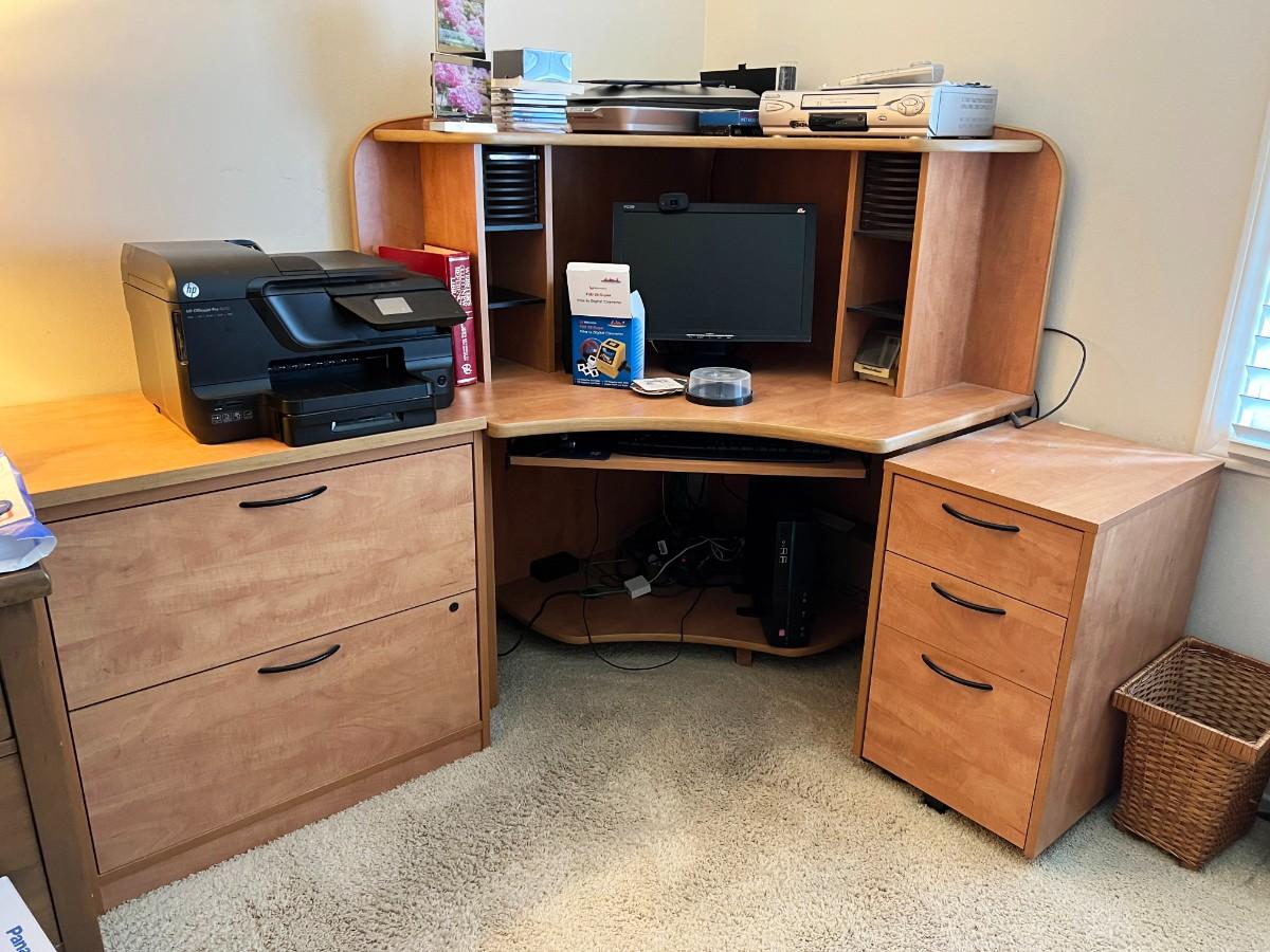 Light Wood Modern Computer Desk & Matching Organizer File Drawer Cabinets