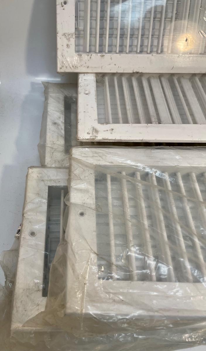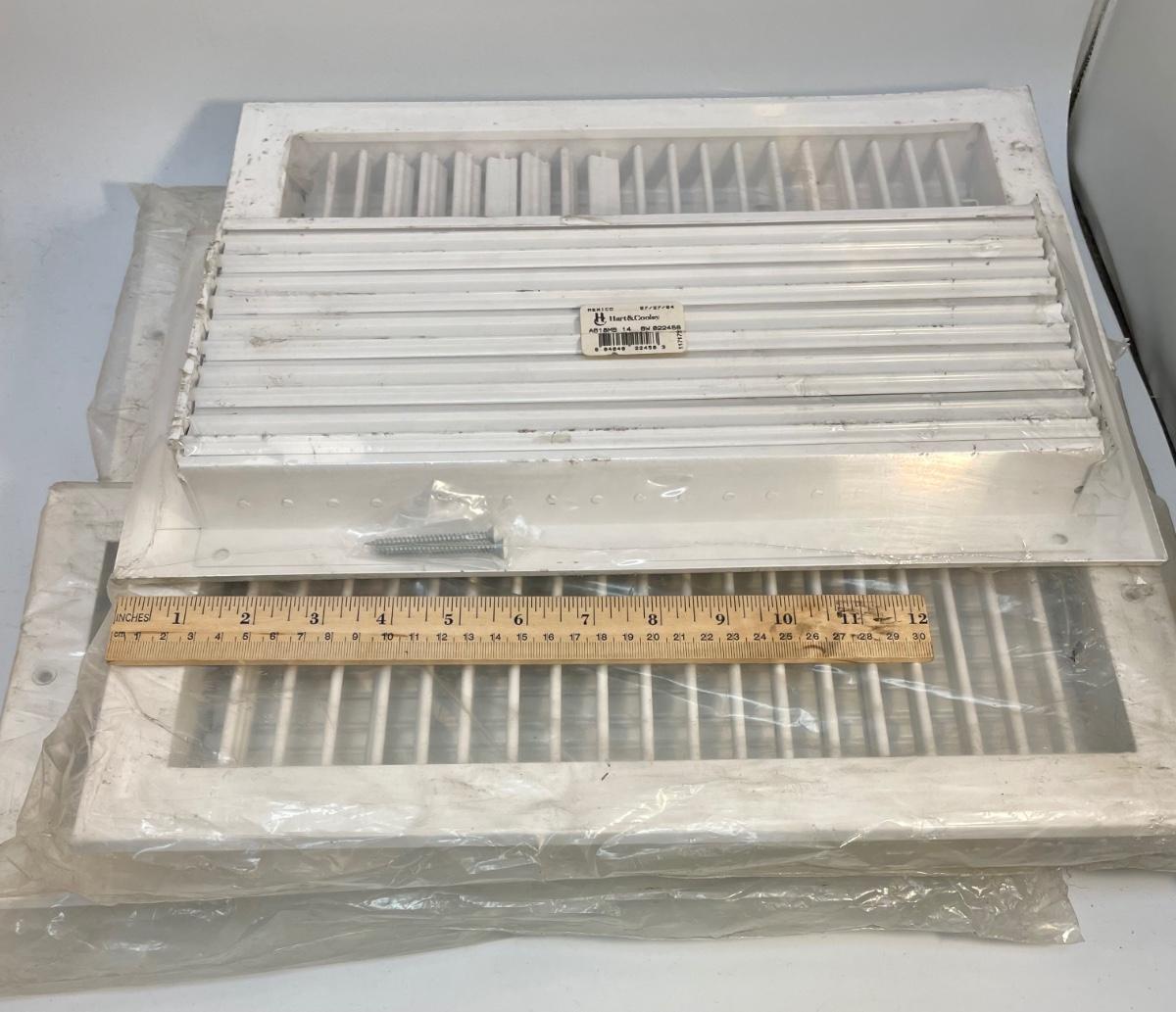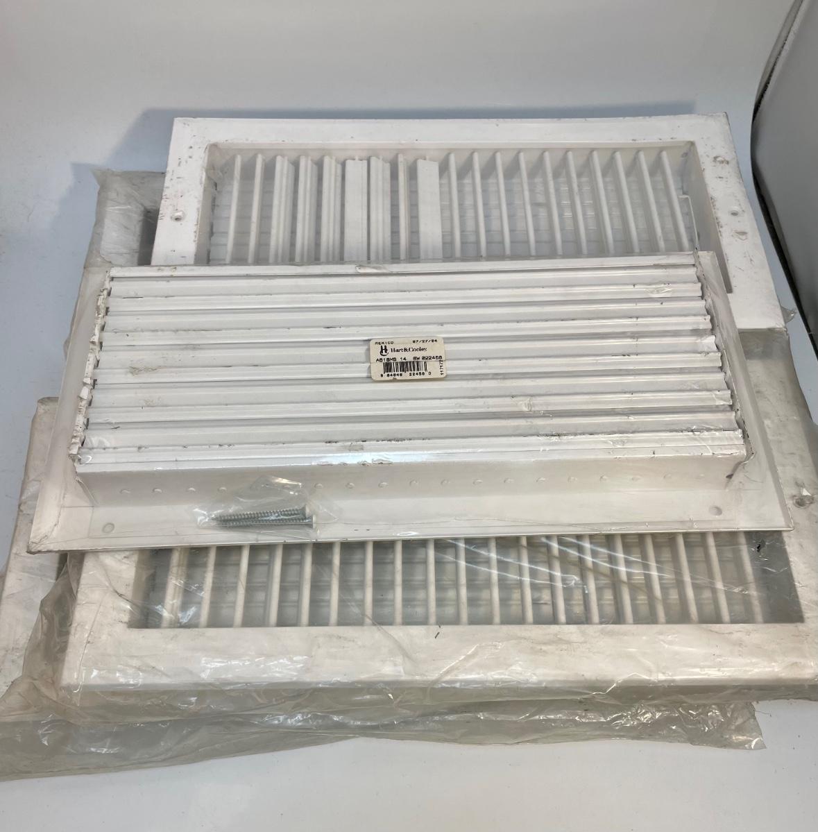 Lot of 5 New 14x6 White Air Duct Registers, includes installation screws. Manufactured by Hart & Cooley.