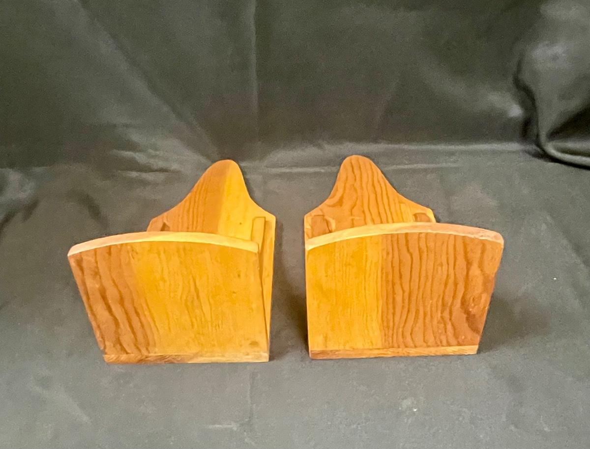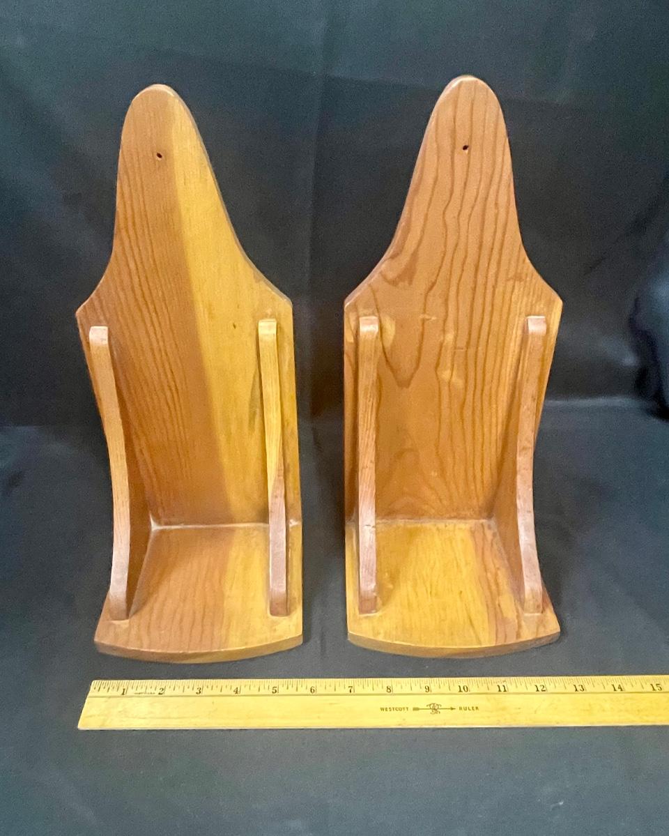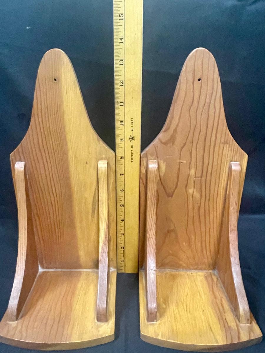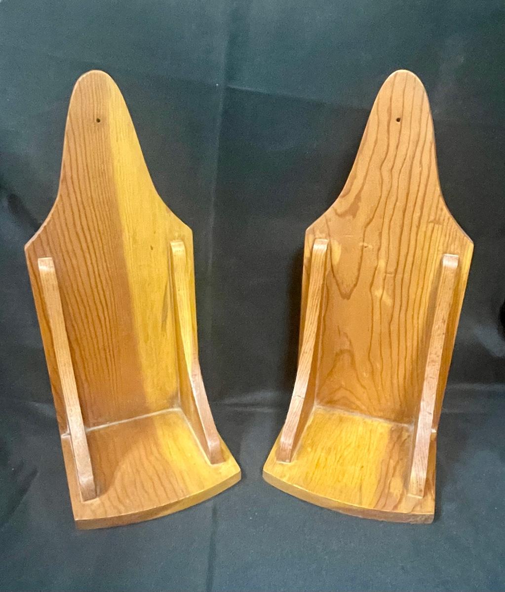 Pair of Light Wood Wall Hanging Shelves Piller Candle Holders Display. Good condition. Narrow, about 6" wide.