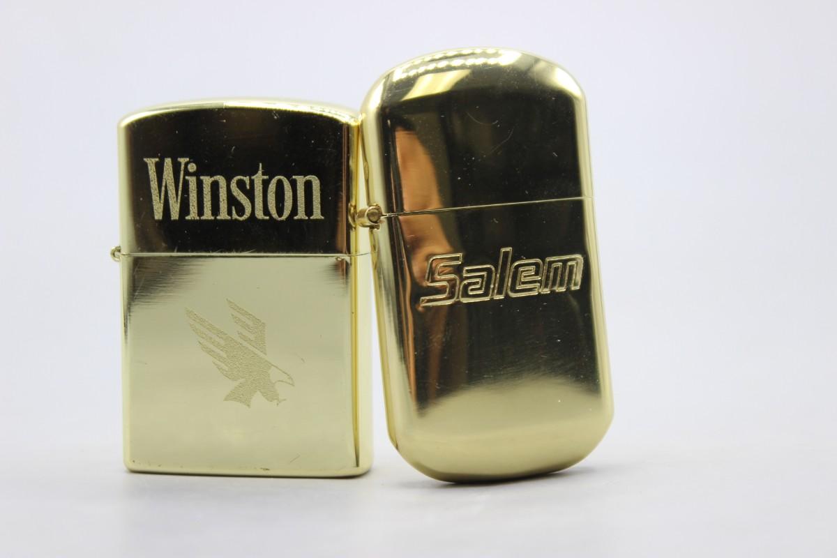 Retro Winston Firebird & Salem Logo Gold Tone Metal Lighters