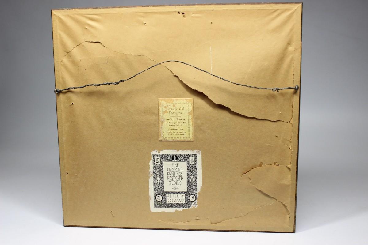 There is no damage to the frame, but there is some vintage wear to the art postcard and is in overall good condition. Check pictures for details.