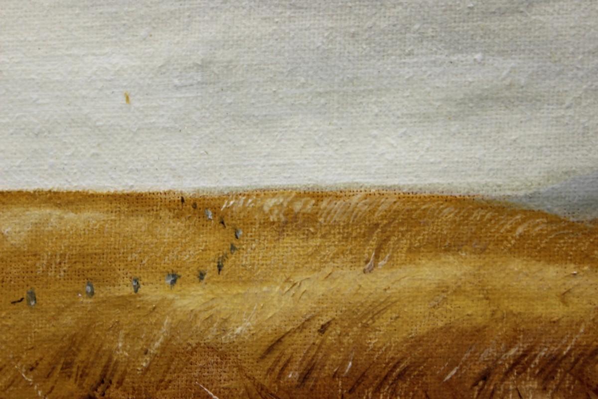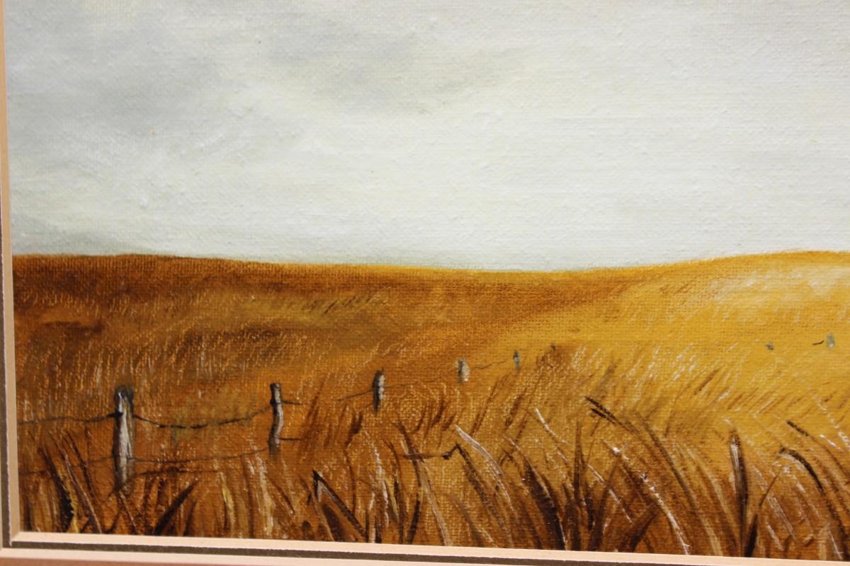 Vintage Framed Oil Painting Desolate Southern Gothic Dry Farm Field Landscape