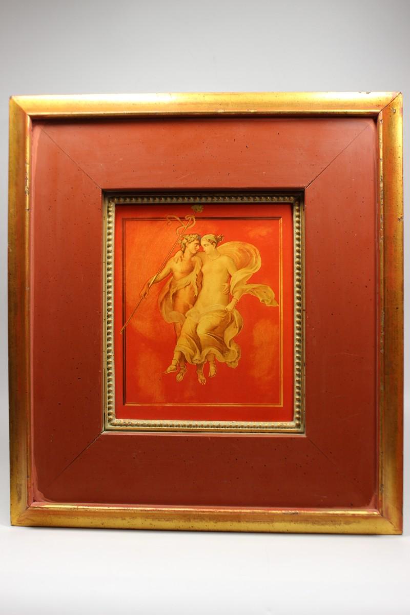 Vintage Framed Greece Goddess Style Figures Gold Red Motif Home Decor Painting
