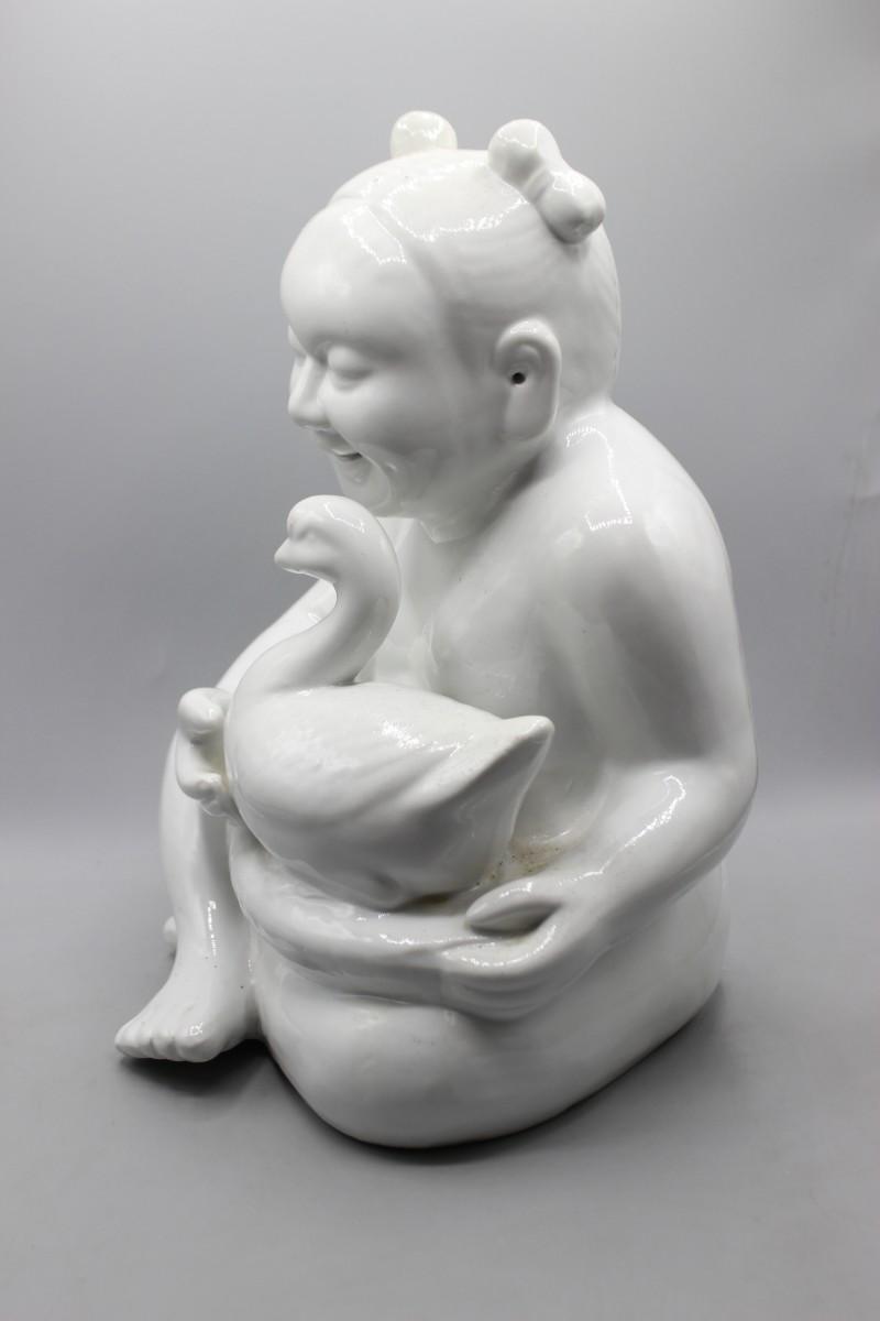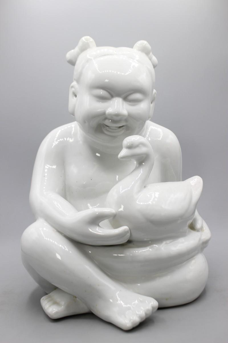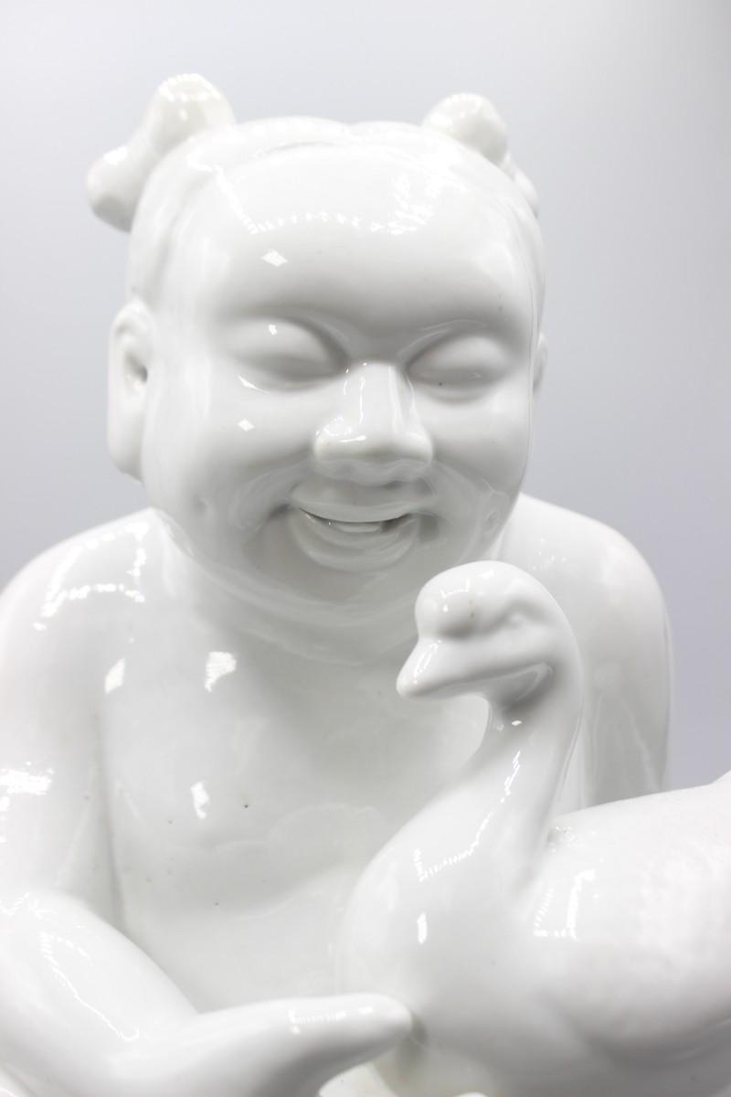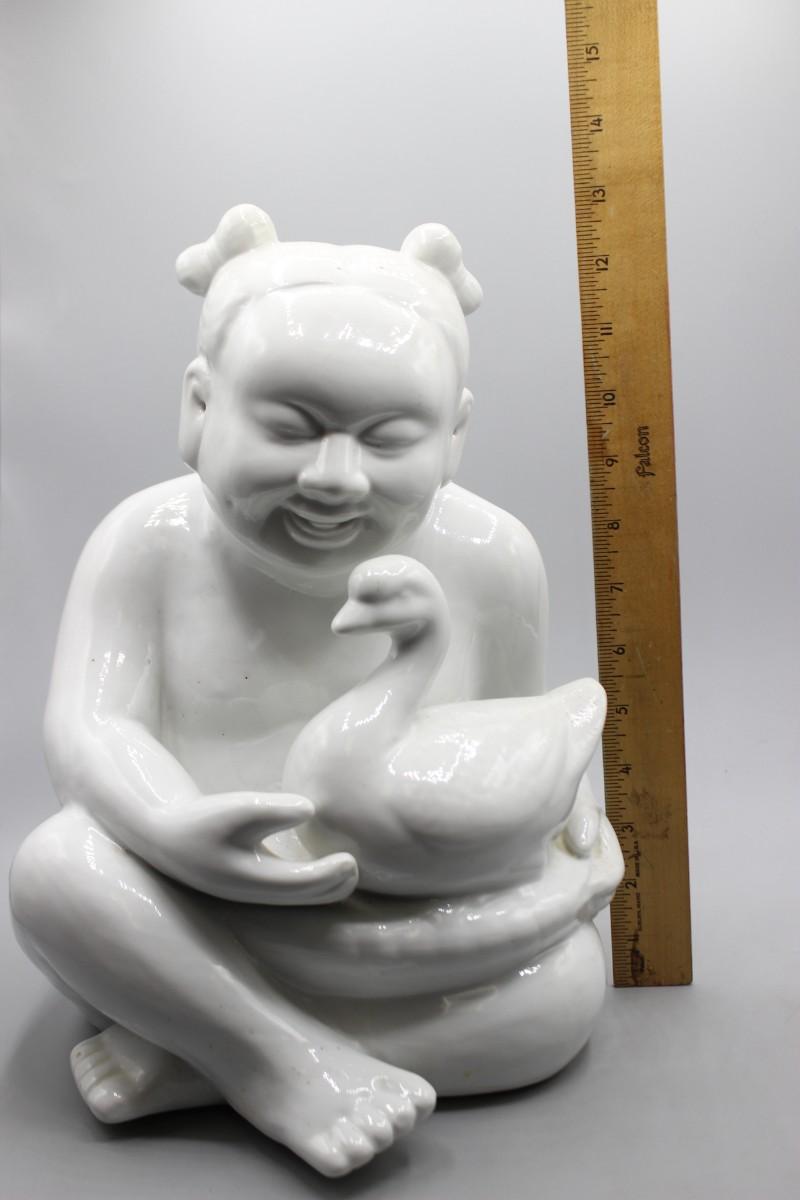 Vintage White Plaster Porcelain Buddha with Duck Statue Garden Yard Zen Art