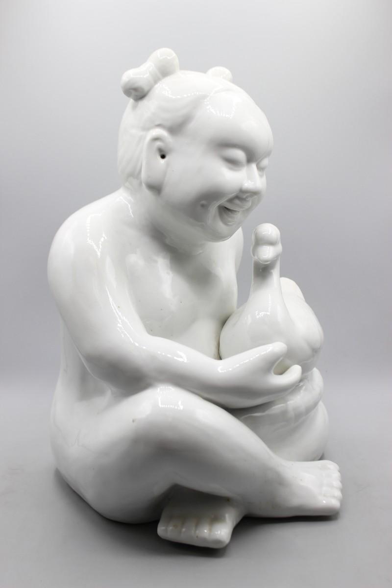 Vintage White Plaster Porcelain Buddha with Duck Statue Garden Yard Zen Art. In good condition. About 12" size.