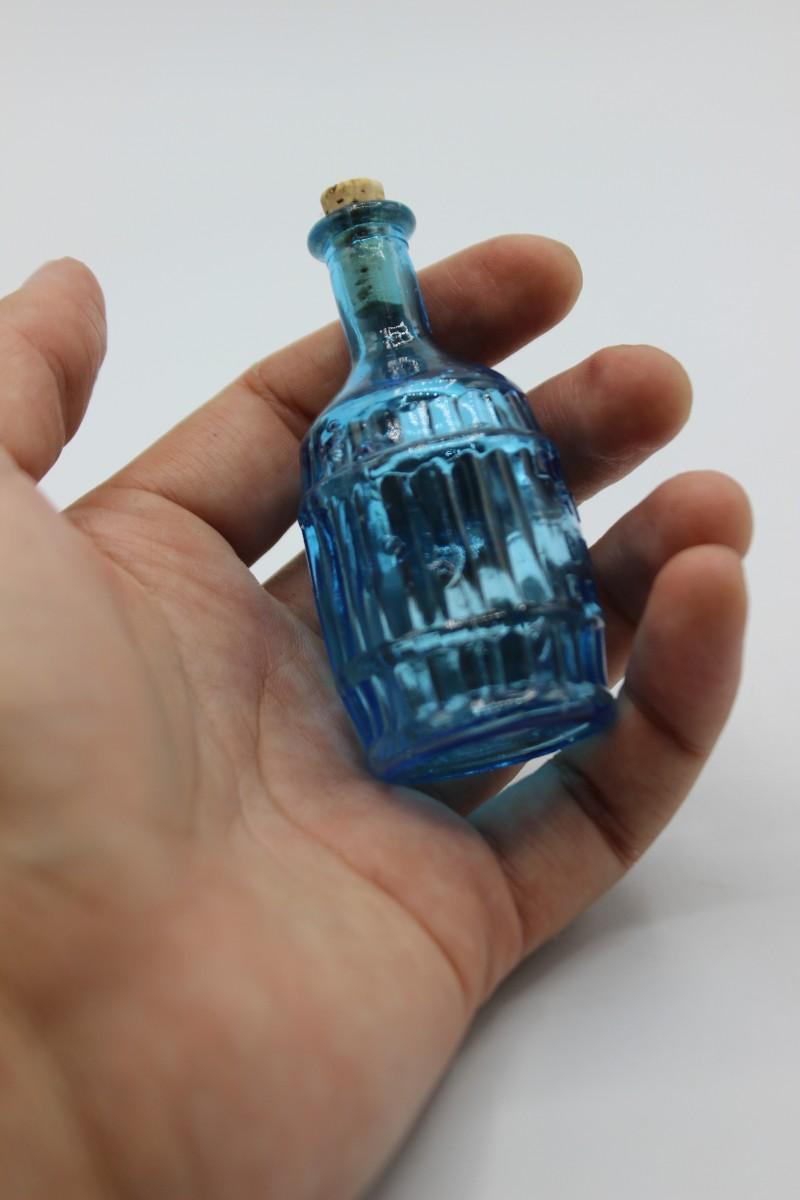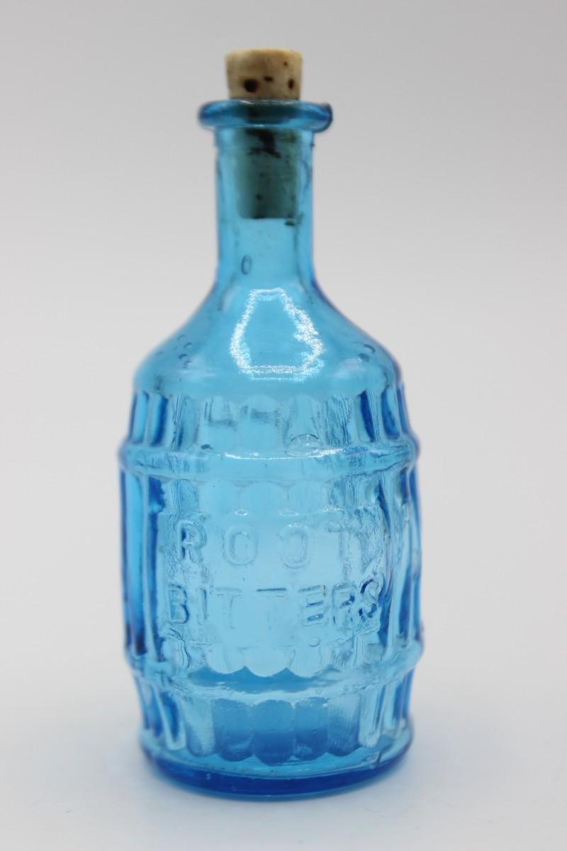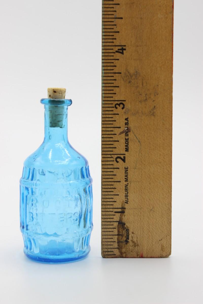 Retro Mid Century Modern Root Bitters Blue Glass Corked Bottle