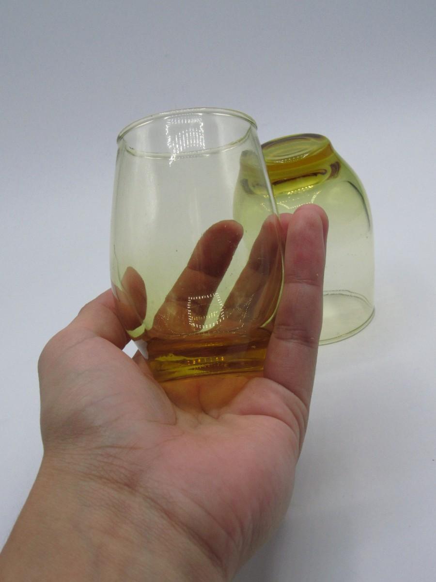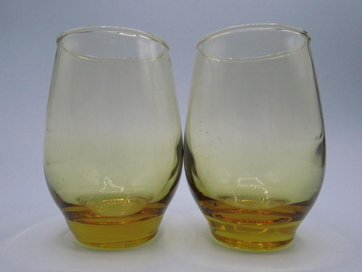 Pair of Small Libbey Amber Glass Barware Drinking Glasses