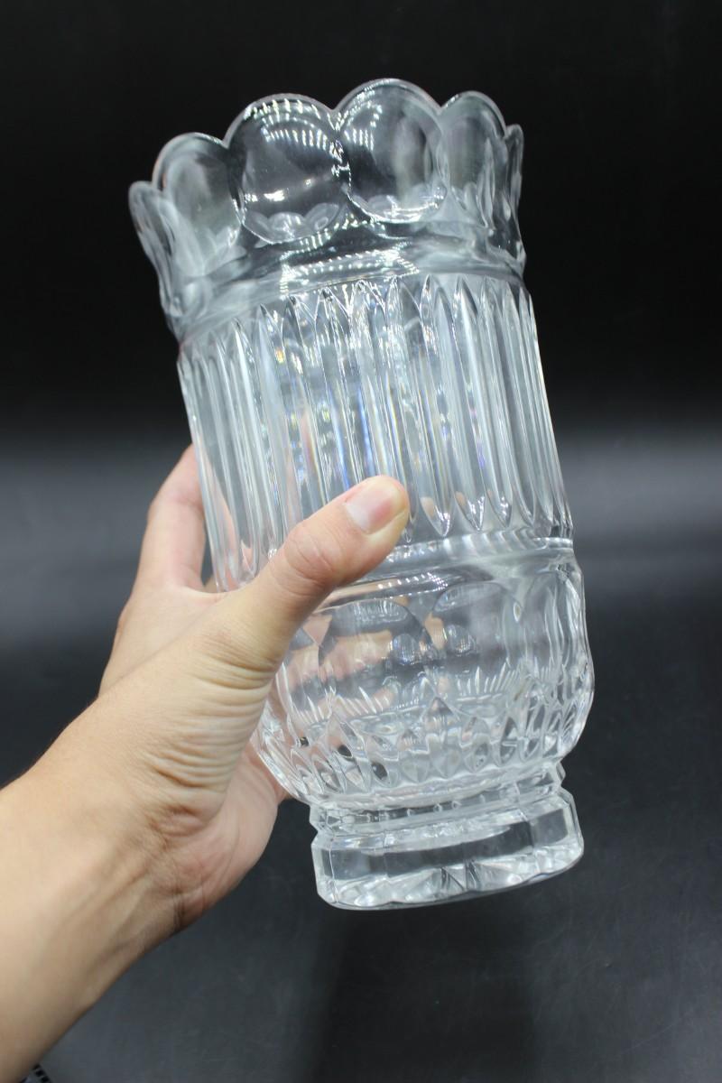 Vintage Lead Crystal Glass Heavy Polish Mid Century Flower Vase