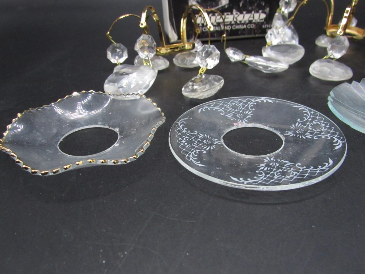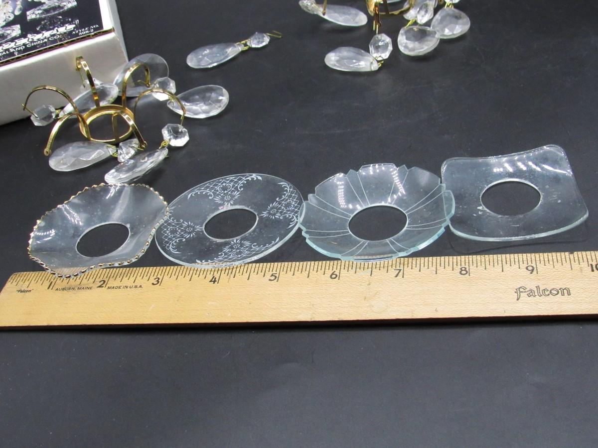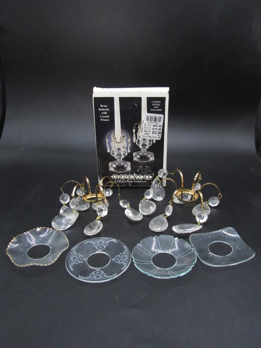 Lot of Candle Bobeches Imperial Crystal and China Co. Brass Bobeche with Crystal Prisms