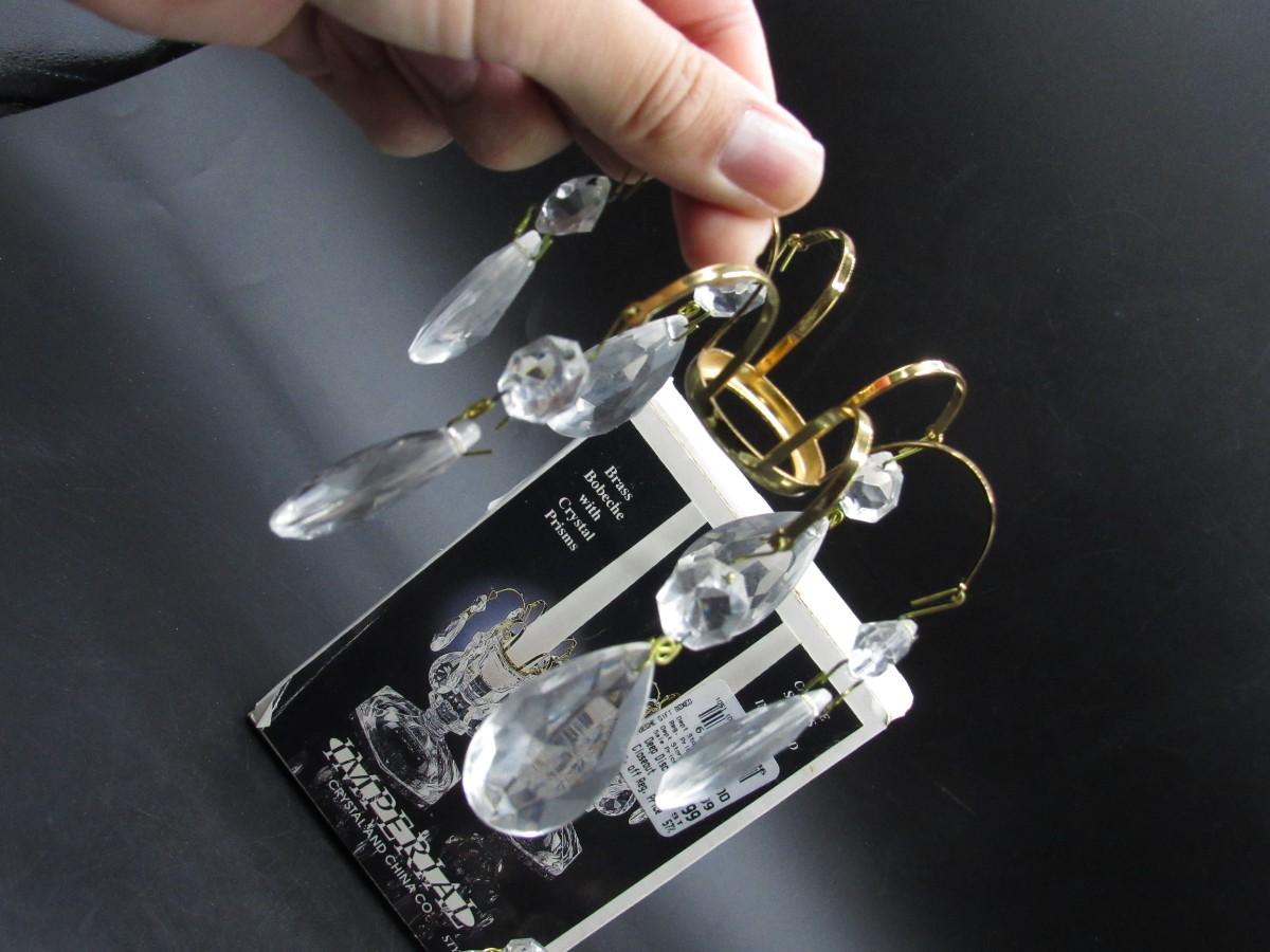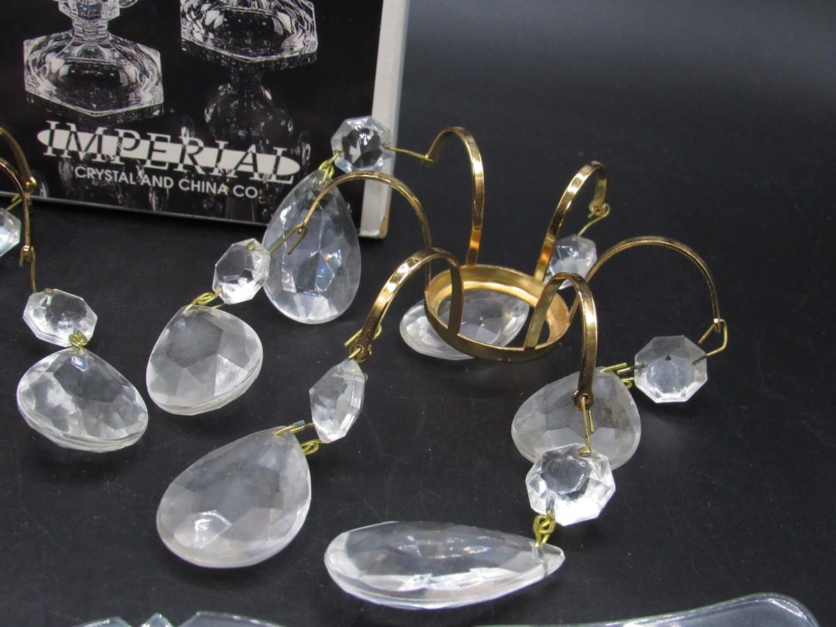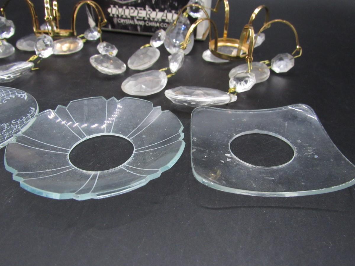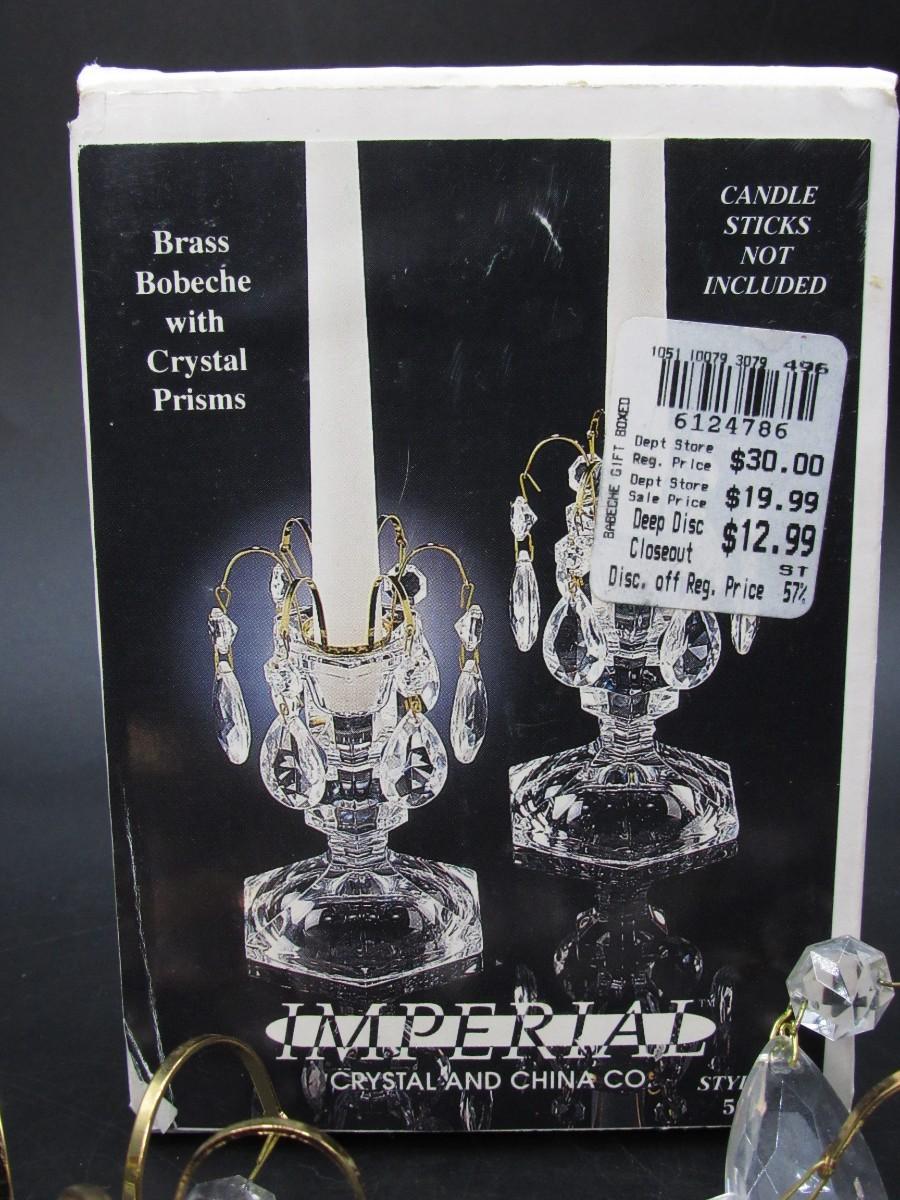 Lot of Candle Bobeches Imperial Crystal and China Co. Brass Bobeche with Crystal Prisms