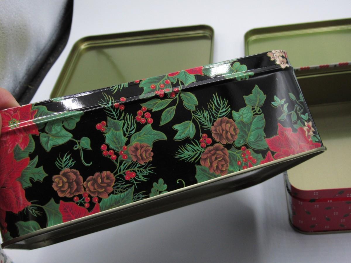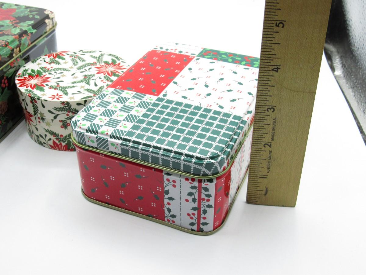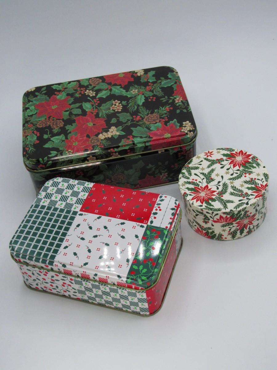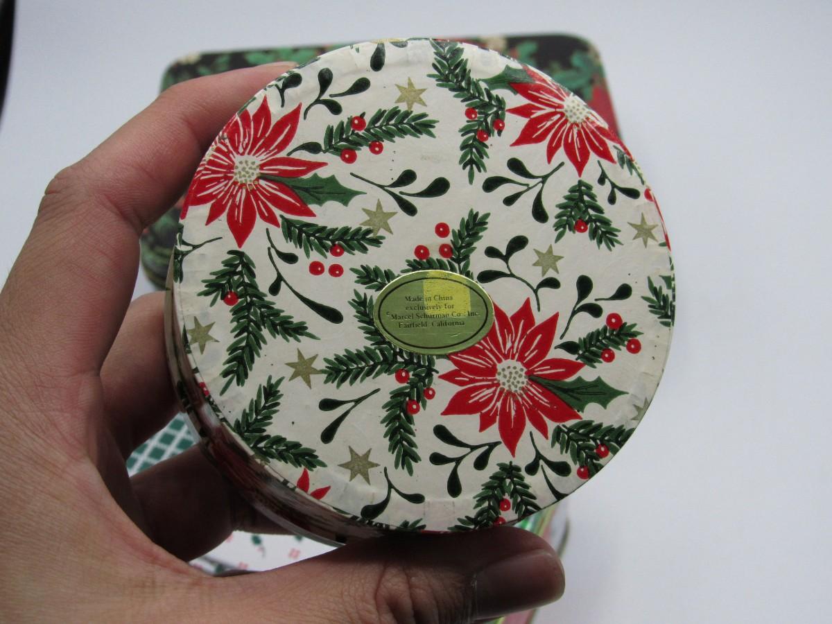 Lot of Christmas Themed Metal Tins & Marcel Schurman Cardboard Material Present Box