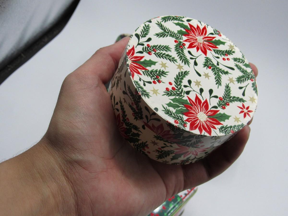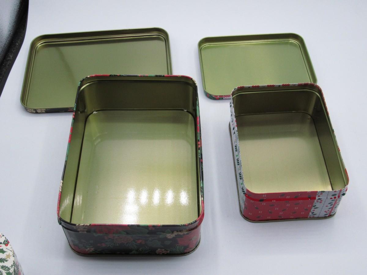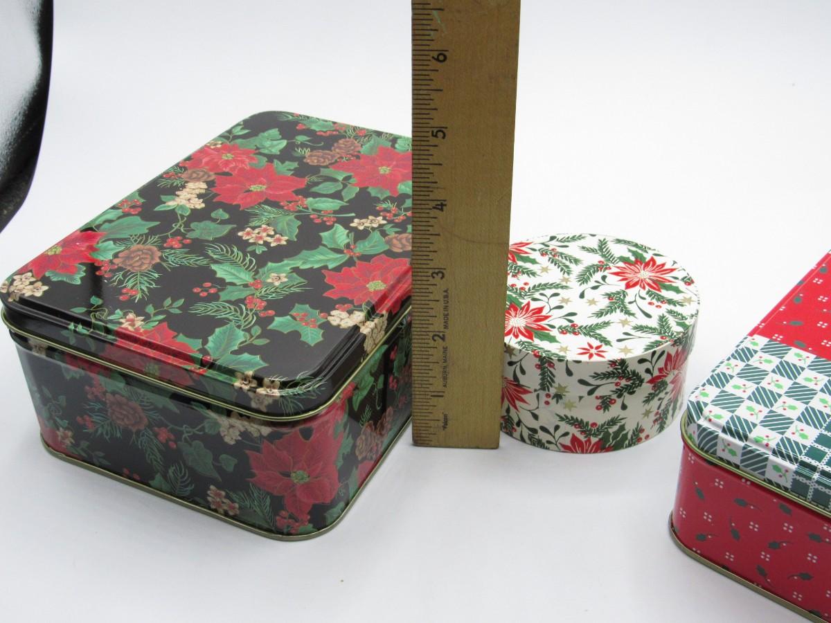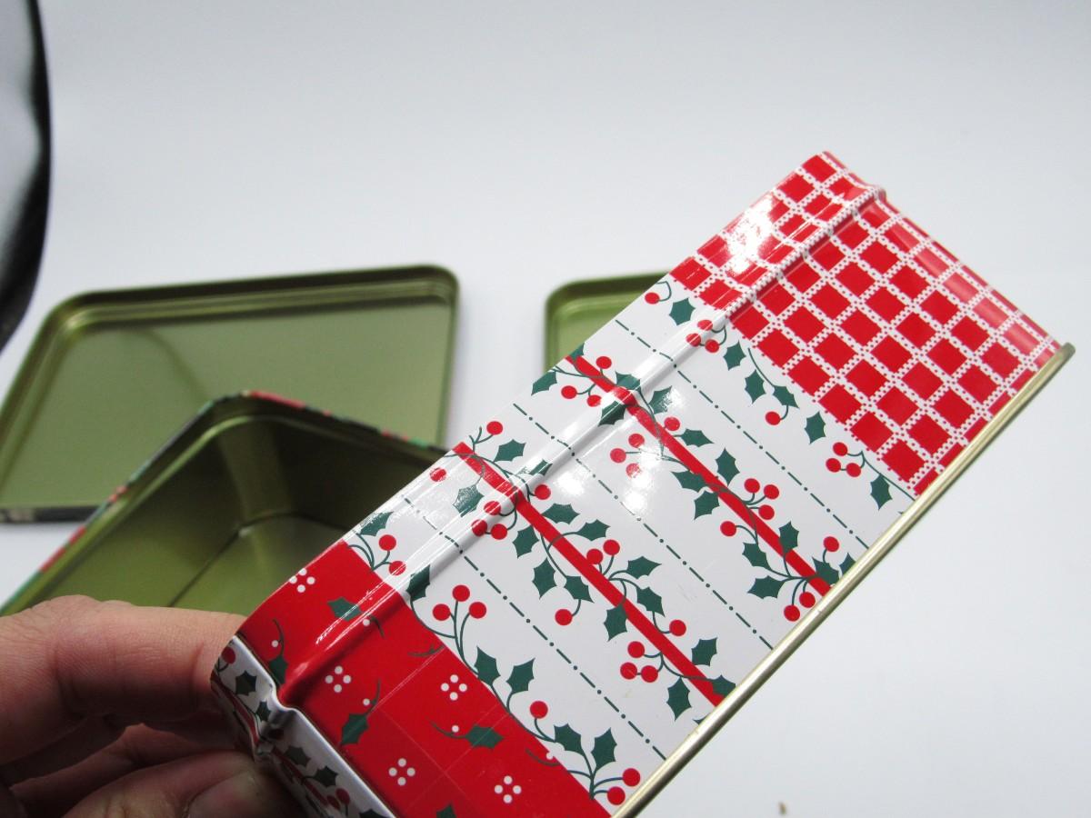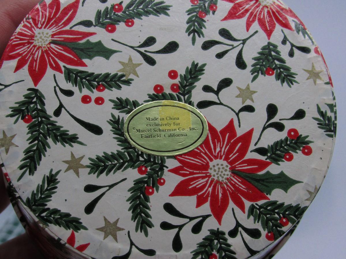 Lot of Christmas Themed Metal Tins & Marcel Schurman Cardboard Material Present Box