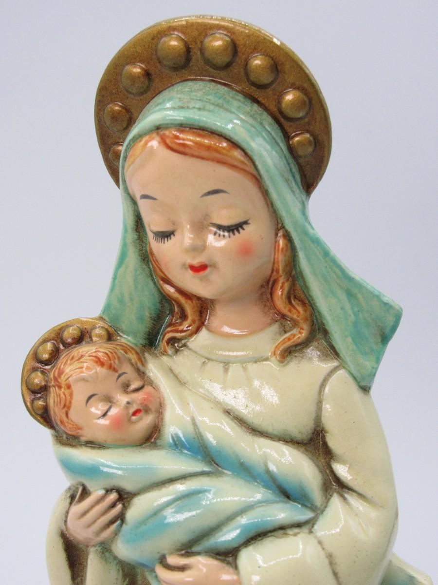 Vintage 1960s Josef Originals Mary & Baby Jesus Paper Mache Material Holiday Home Decor Figurine