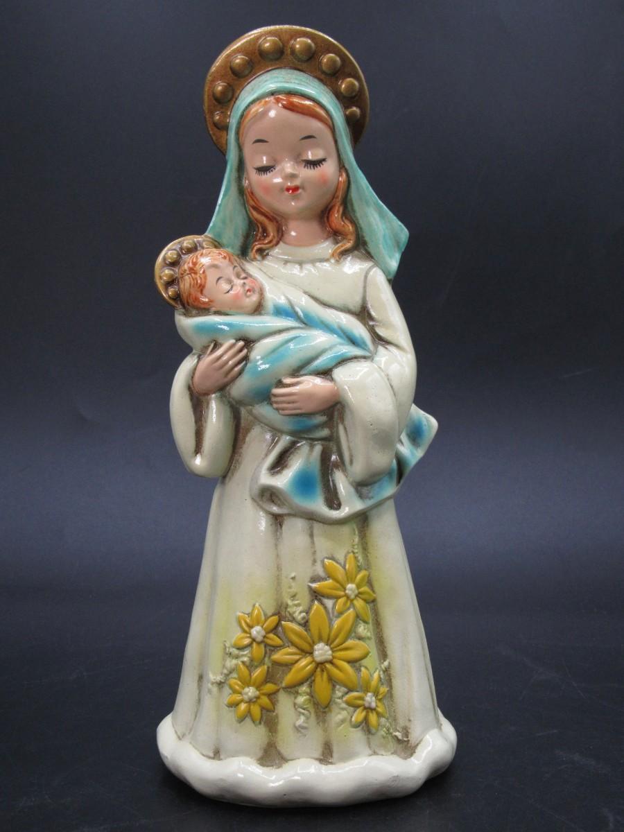 Vintage 1960s Josef Originals Mary & Baby Jesus  Paper Mache Material Holiday Home Decor Figurine