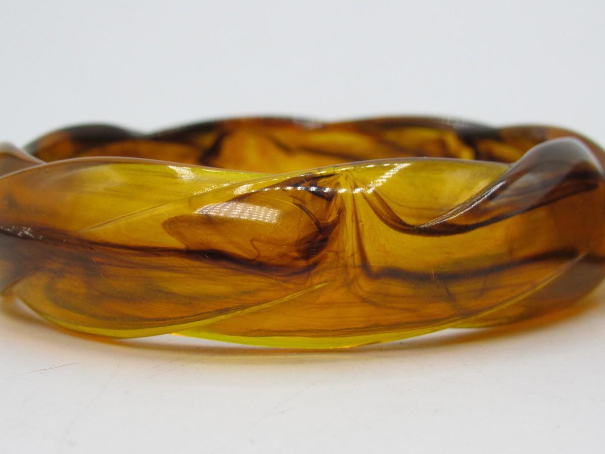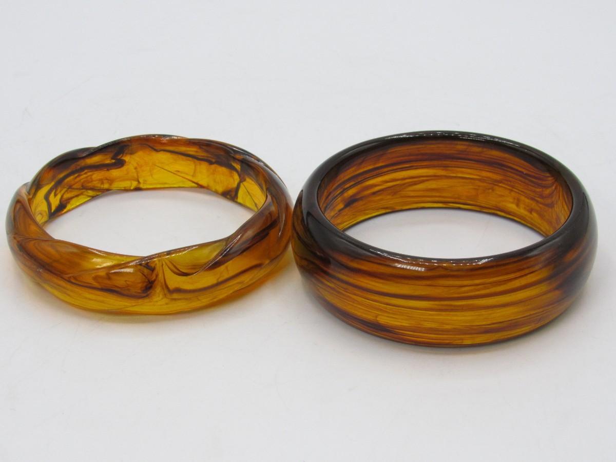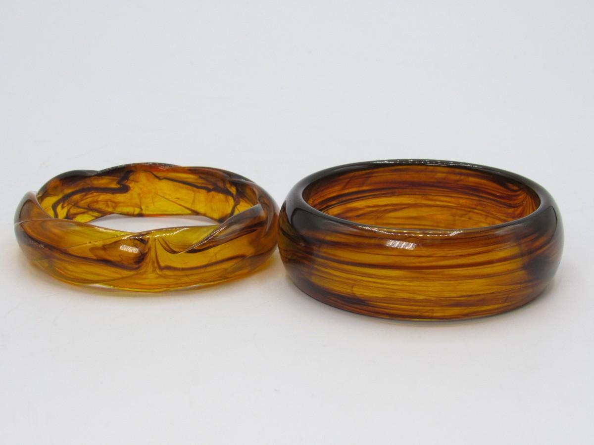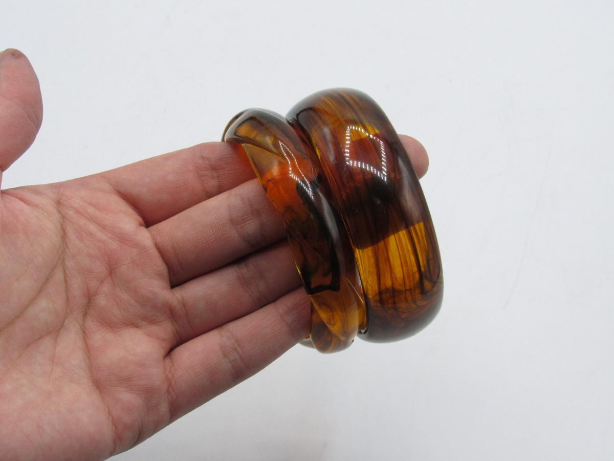 Retro Transparent Lucite Brown Color Resin Bangles Bracelets