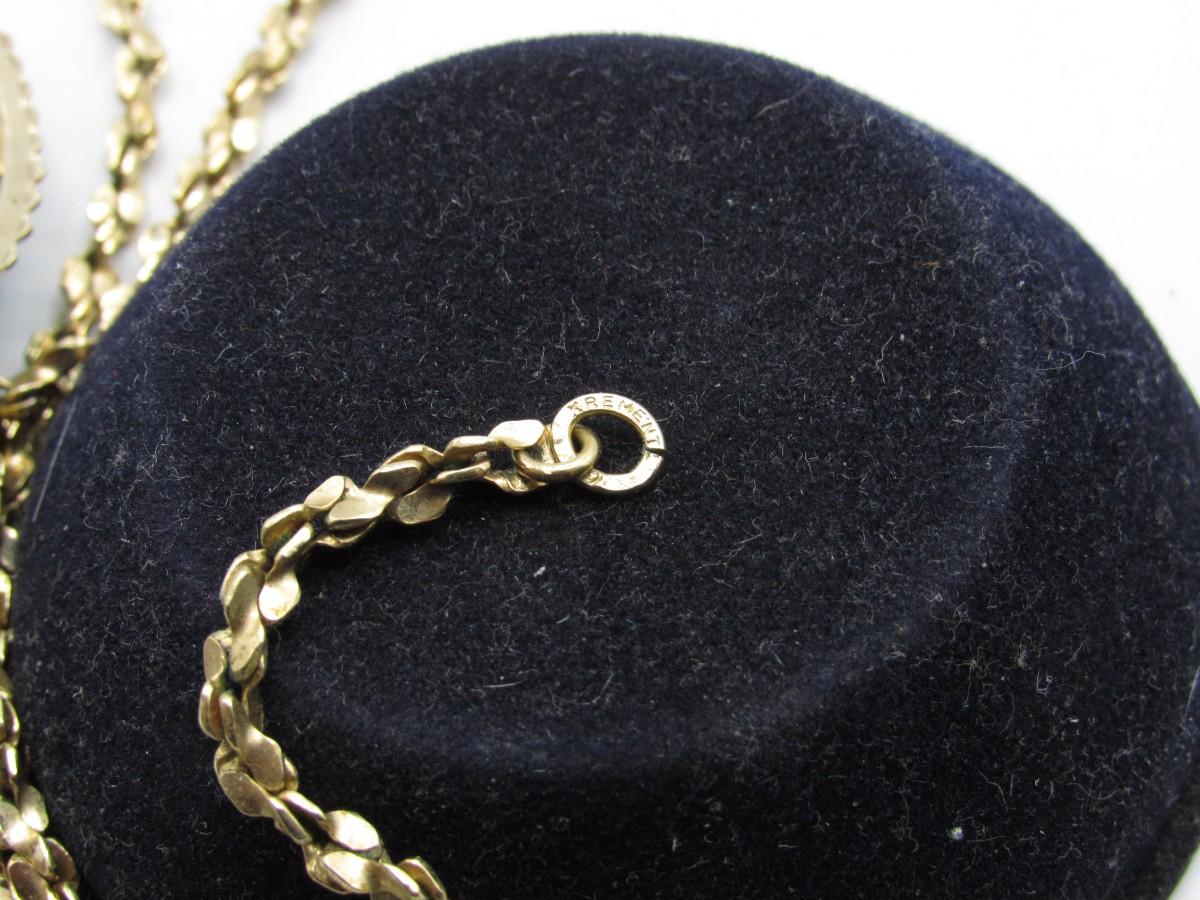 There is no damage to the necklace or the pendant, and is in good wearable condition. Check pictures for more details and sizing.