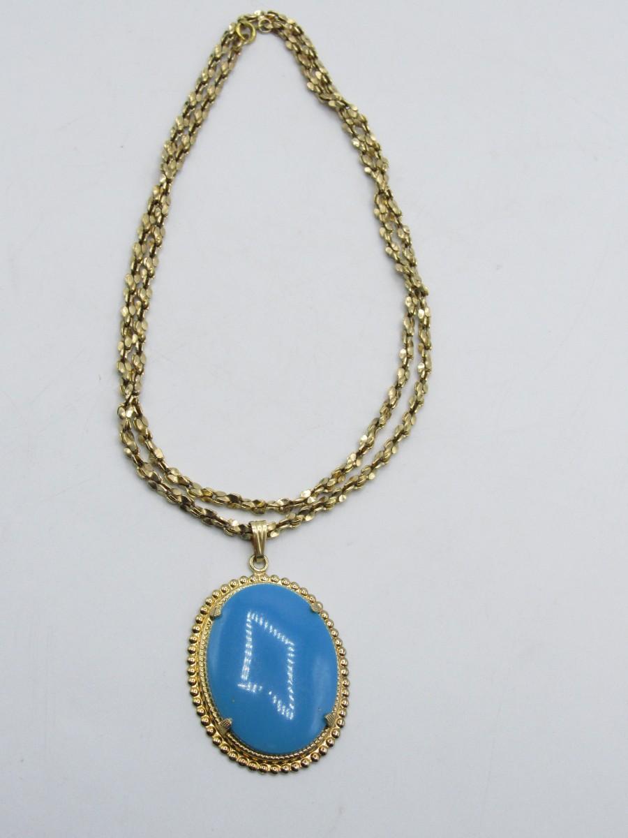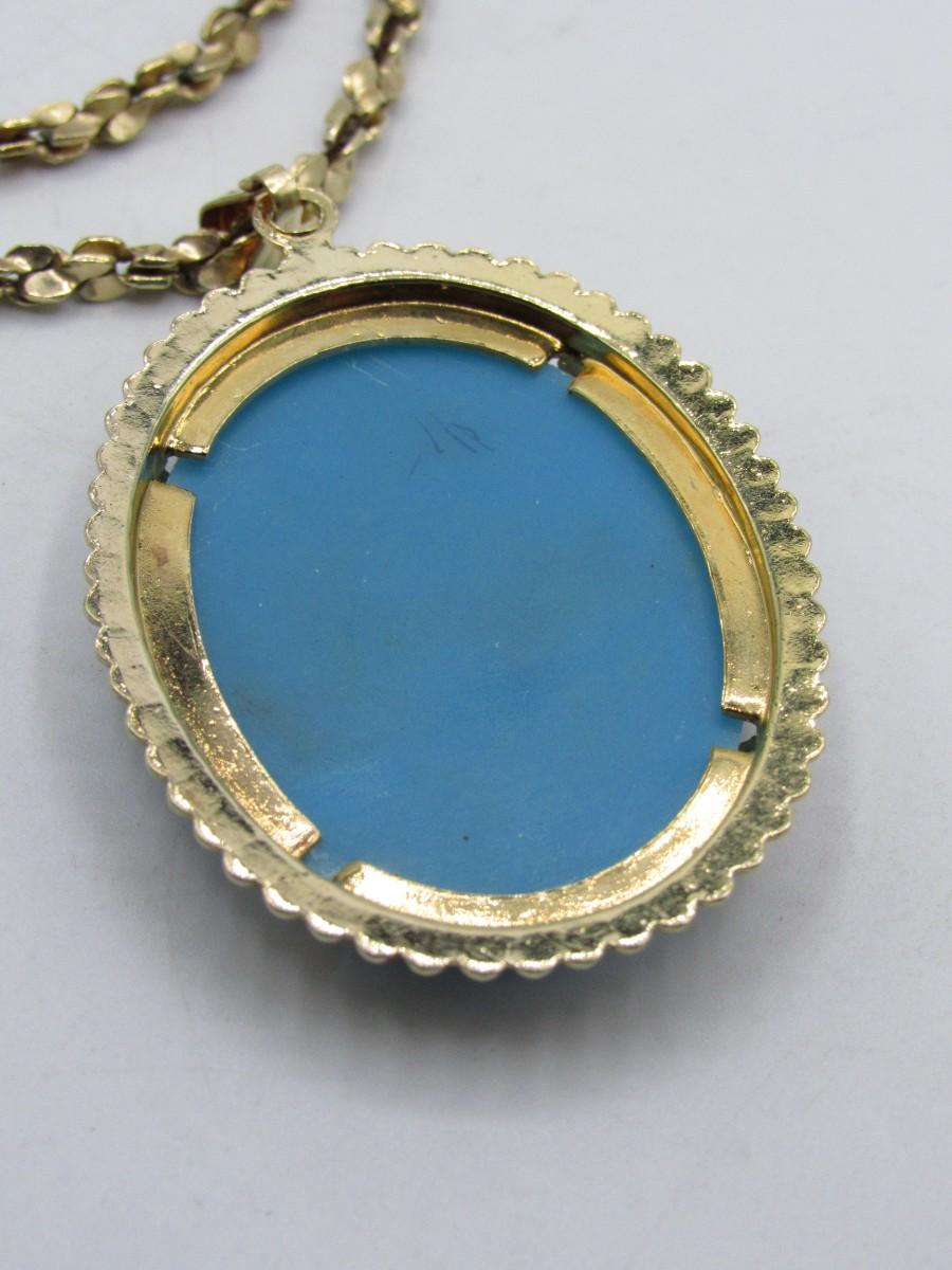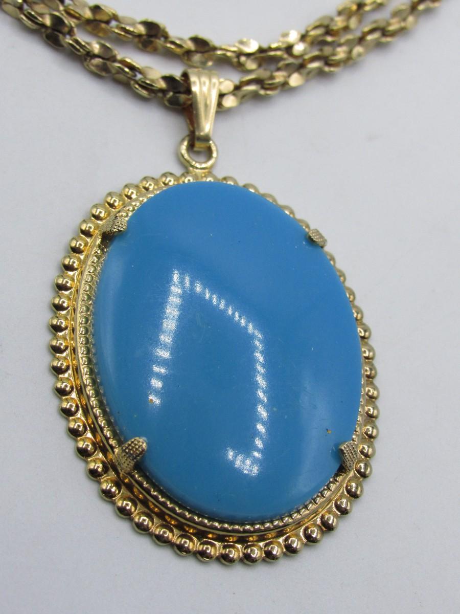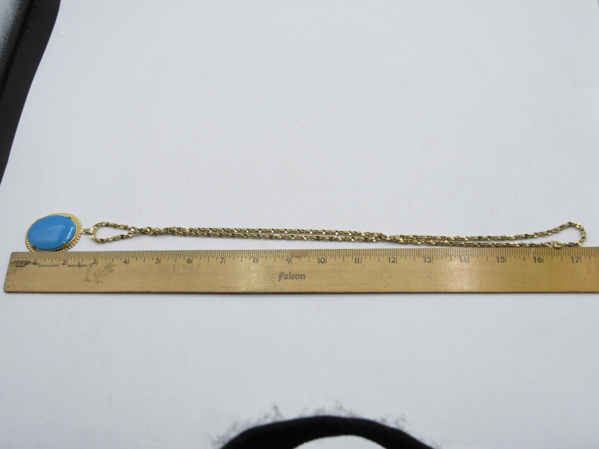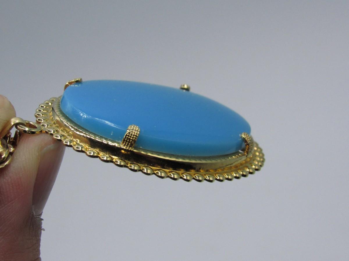Vintage Krementz Jewelry Metal Large Blue Pendant Necklace