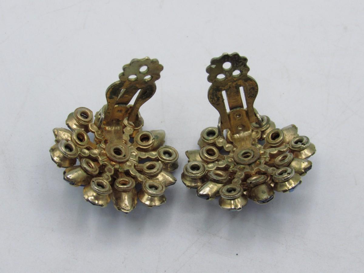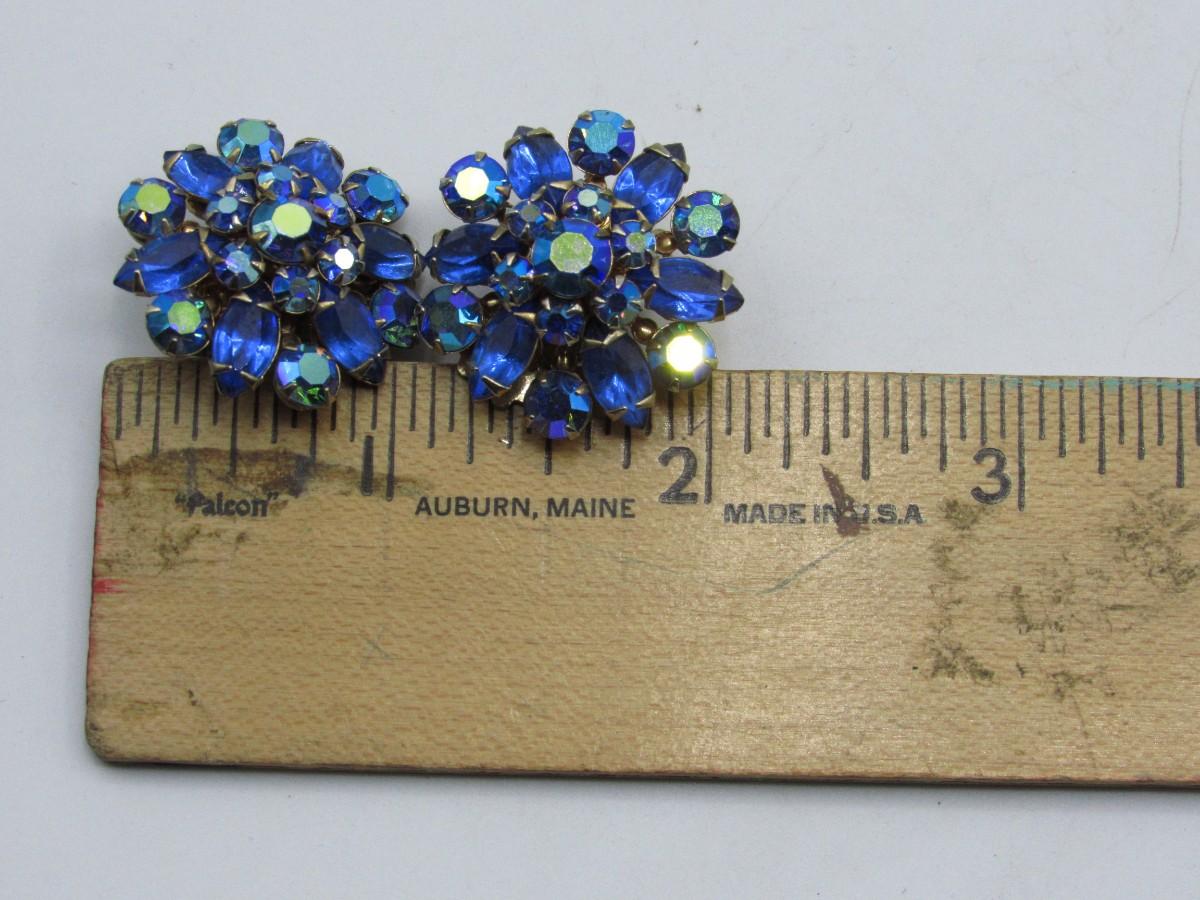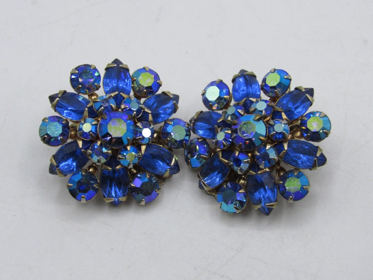Pair of Blue Flower Pattern Faux Jewelry Costume Clamp On Earrings