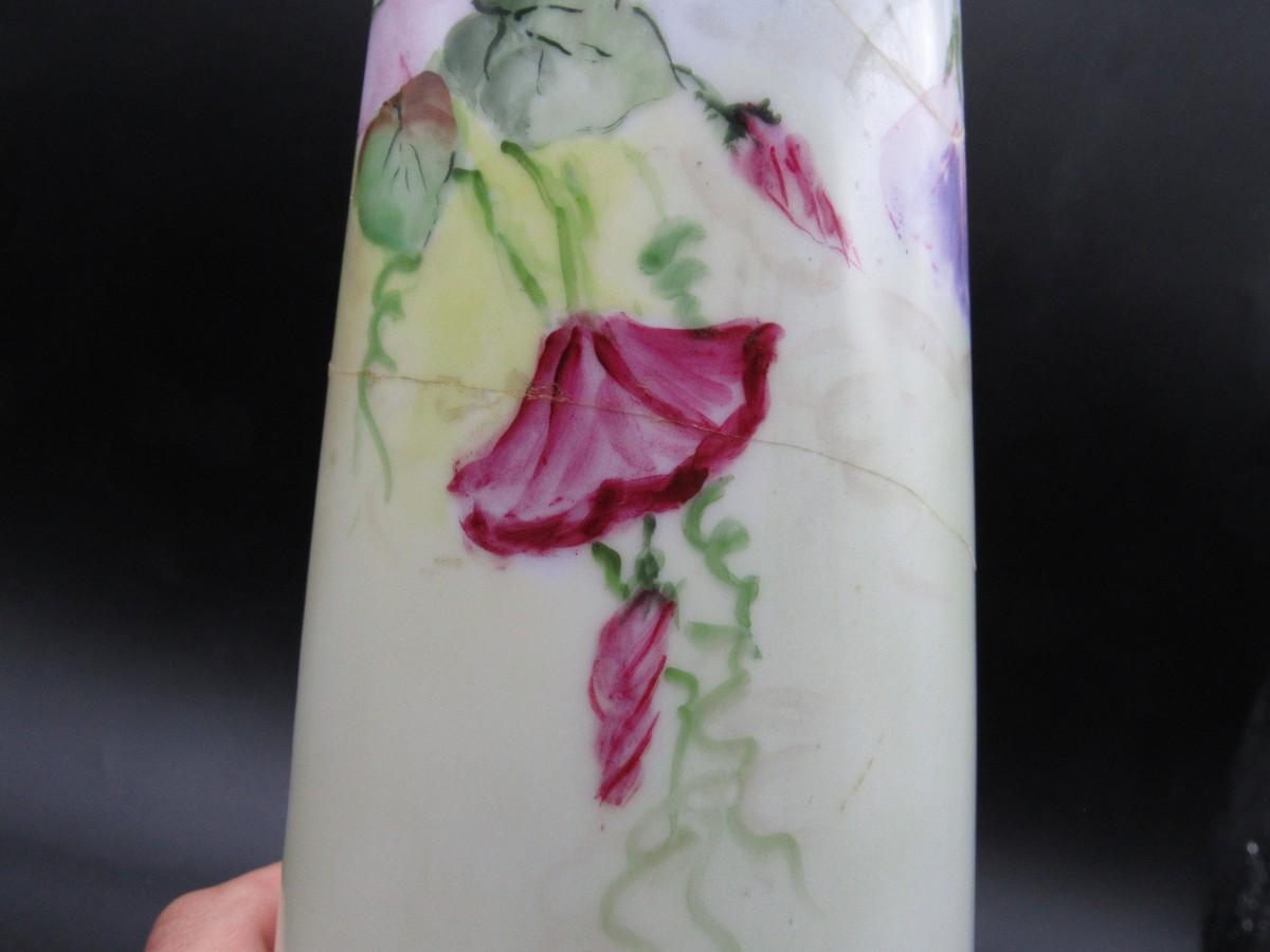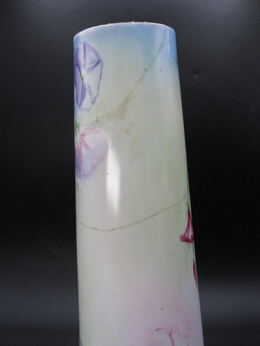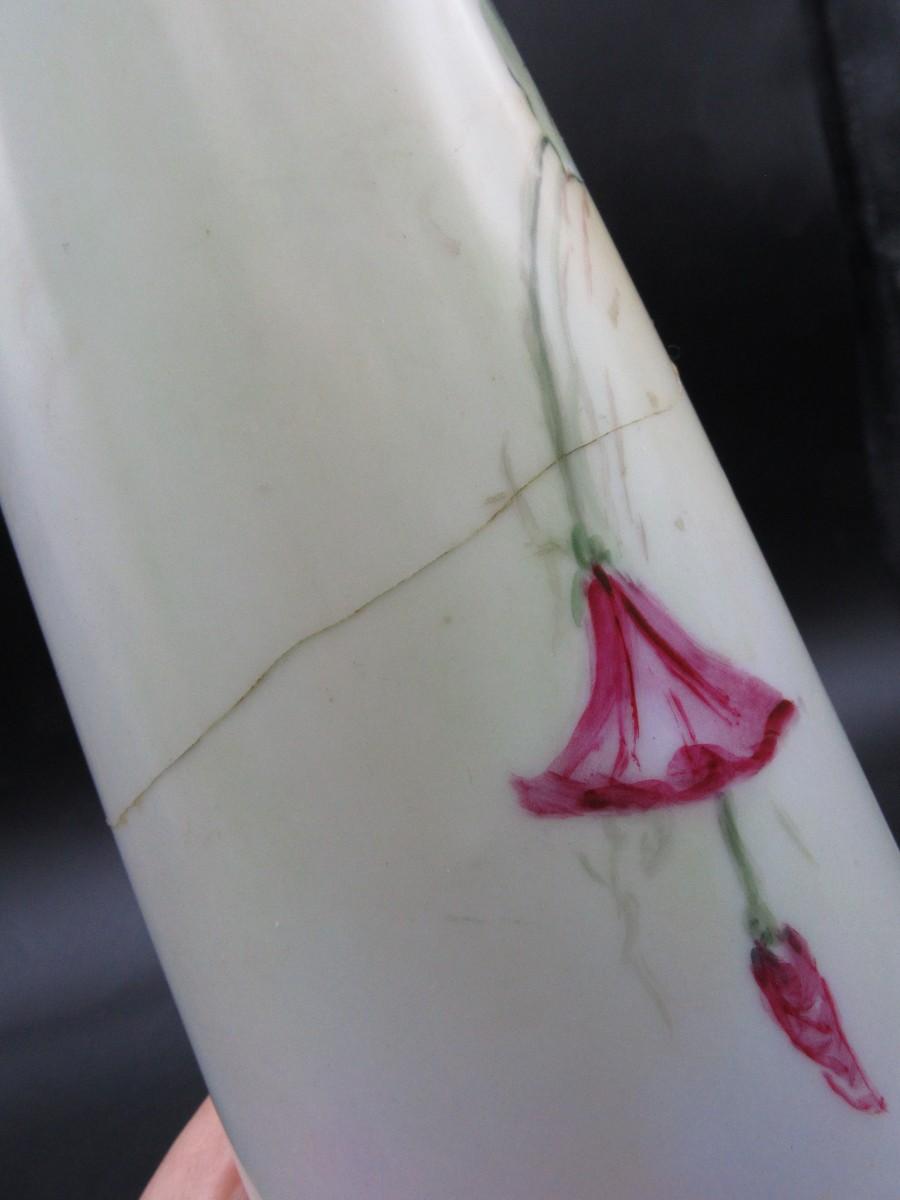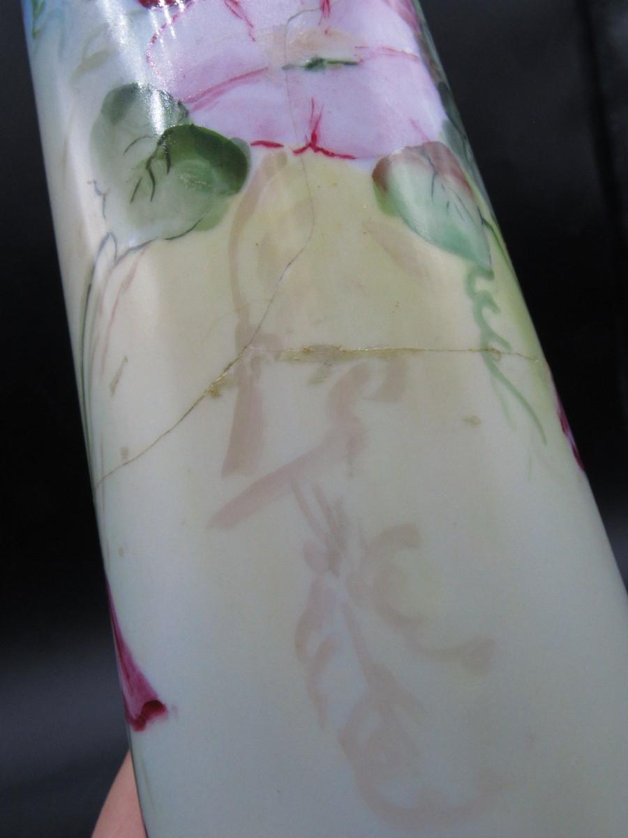 There is a noticeable repair running around the vase, but there is no other significant damage and is in overall fair displayable condition. Check pictures for more details and sizing.