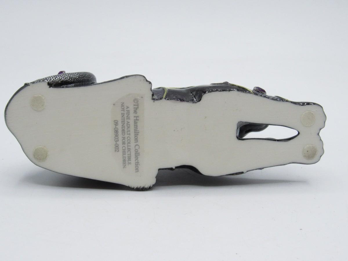 Produced for the Hamilton Collection. In very good previously owned condition. 16 purple jewels, and the eyes are also purple.