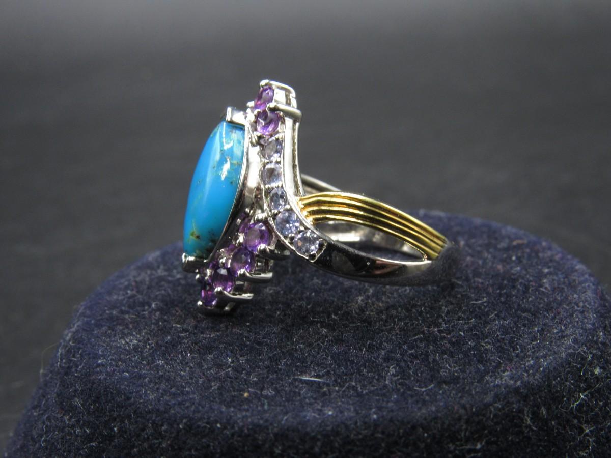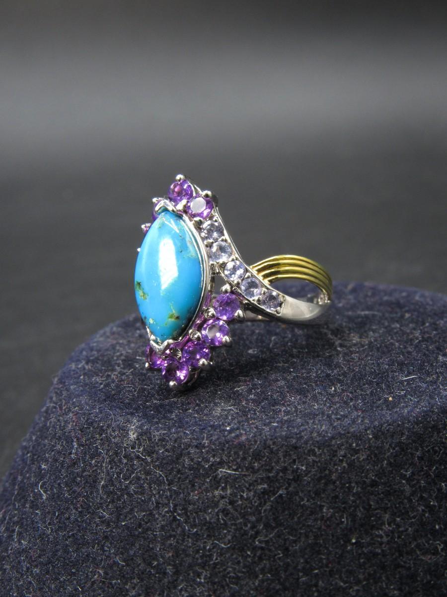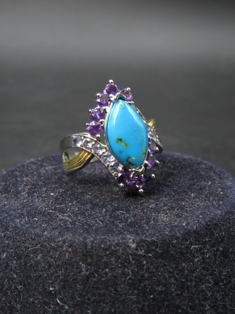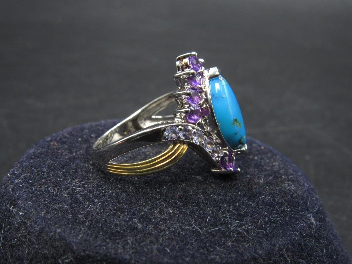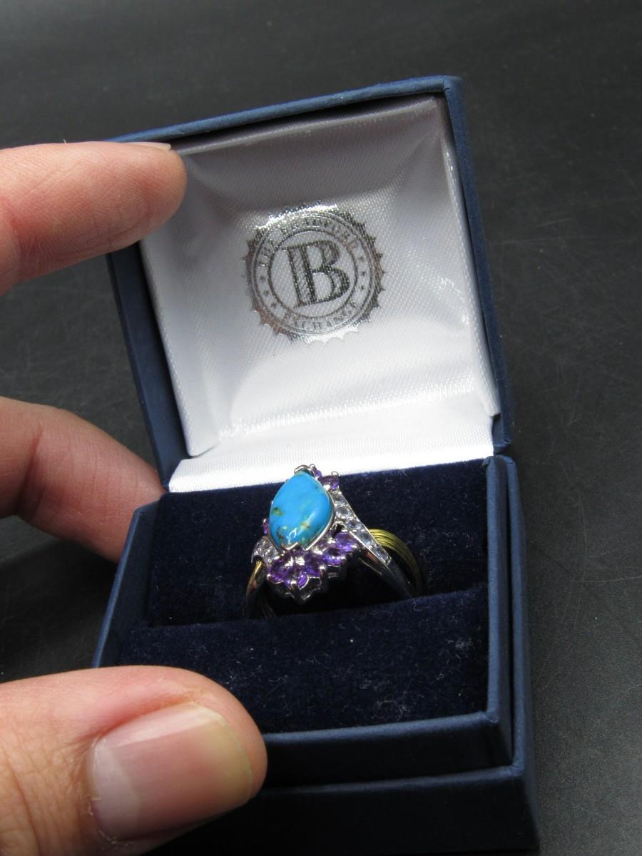 Bob Mackie The Bradford Exchange Turquoise Stone Purple Ribbon Swirl Ring with Box