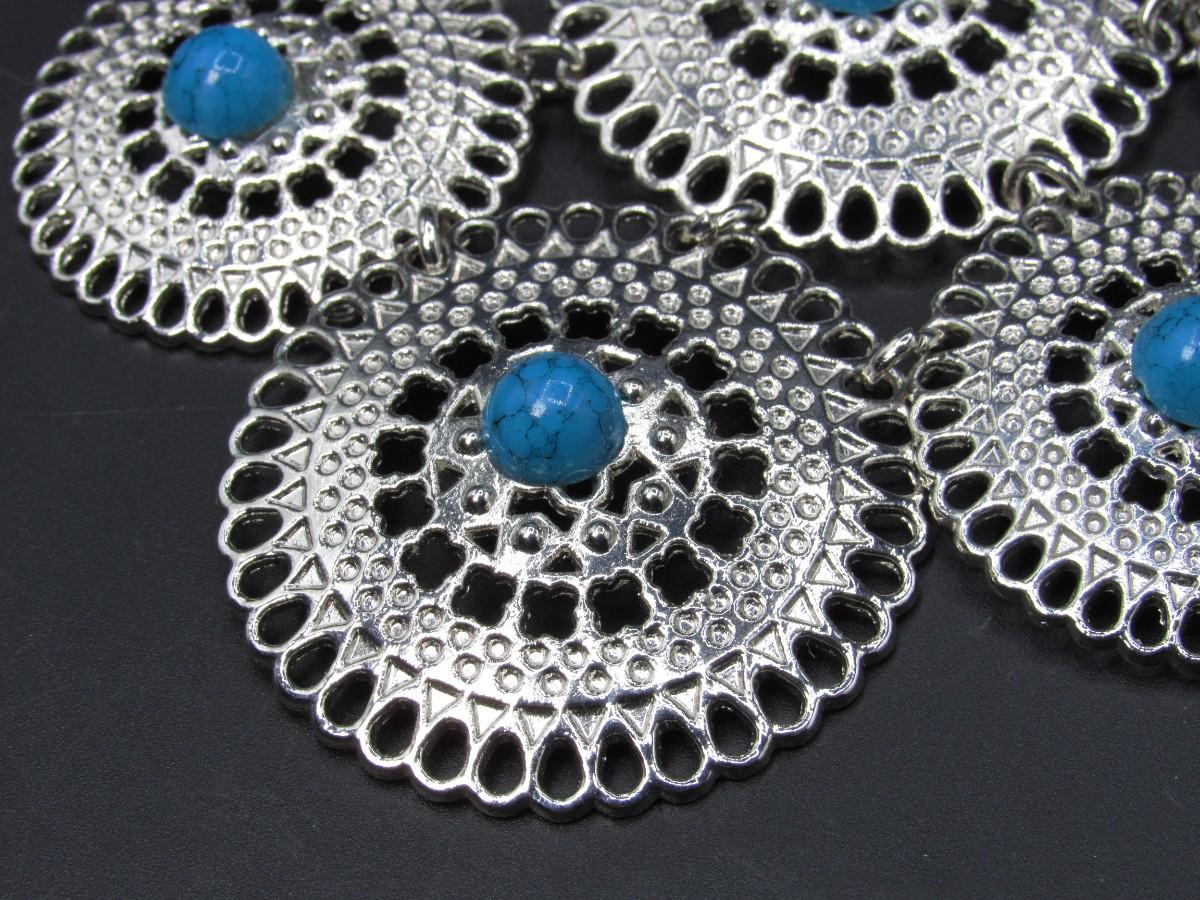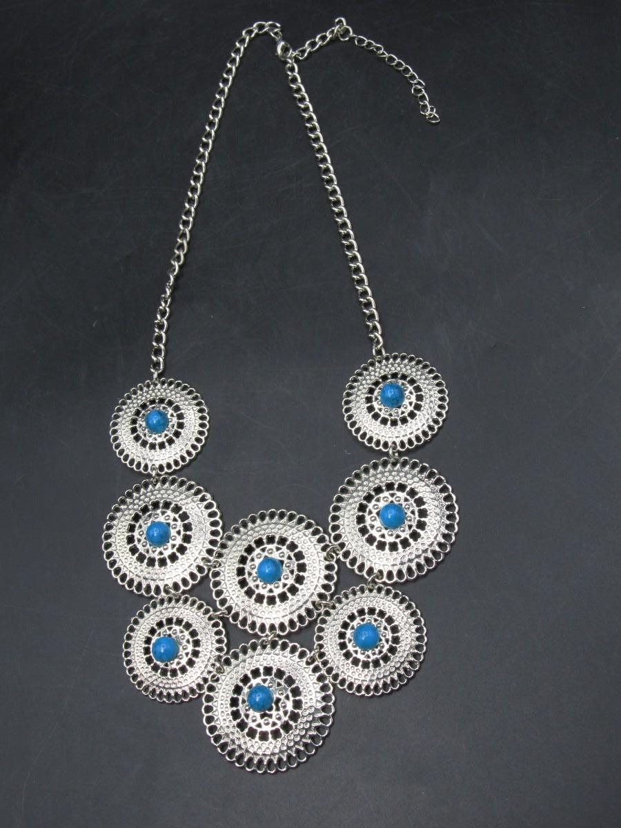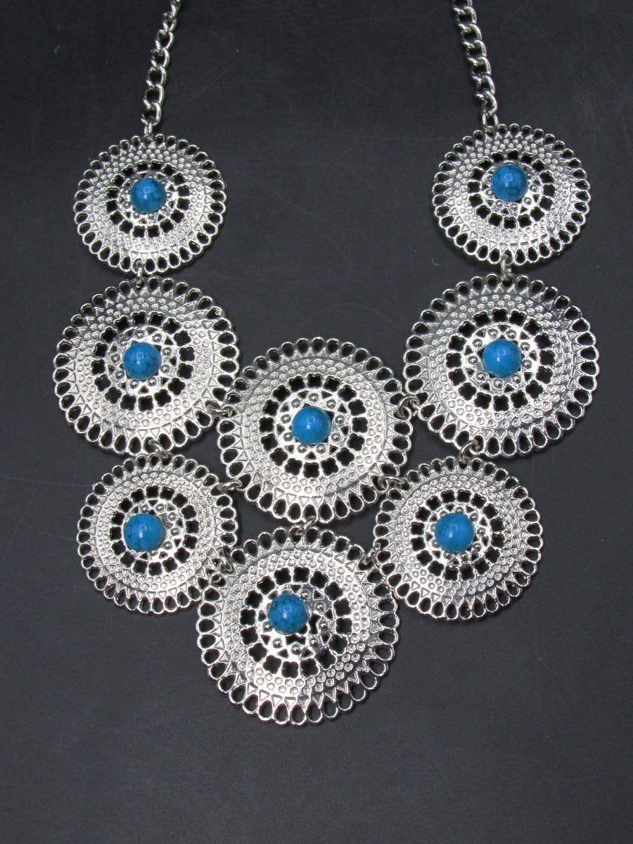 Fashionable Turquoise Rhinestones Circular Pattern Fashion Jewelry Piece Necklace